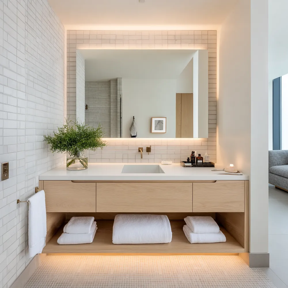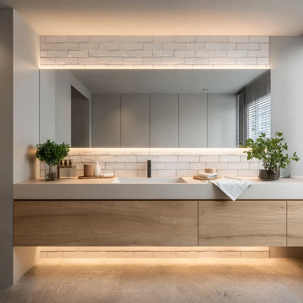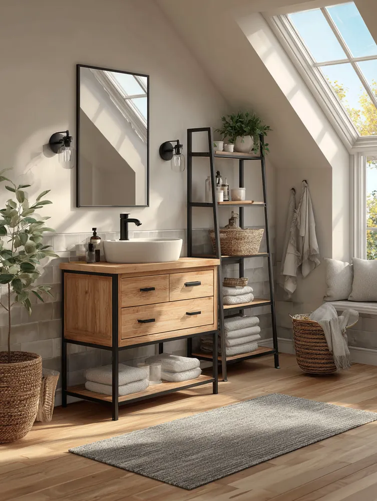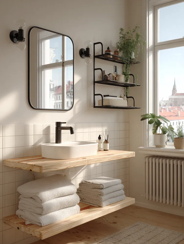 Who says bathrooms can't be serene and spa-like? 🌲 In Scandinavian design, we love bringing in natural materials for a calming, grounded feel. Light wood accents, like a teak vanity or wooden storage shelves, add instant warmth. Pairing this with natural stone or even concrete-look tiles creates a beautiful contrast. 💧 The key is to keep the palette muted and focus on the tactile qualities of these materials. It’s about creating a peaceful sanctuary. What natural materials do you love in your bathroom? #scandibathroom#naturalmaterials#woodandstone#bathroominspiration#spasanctuary#minimalistbathroom#interiordesignideas#materialmood#calmspaces#bathroomdecor