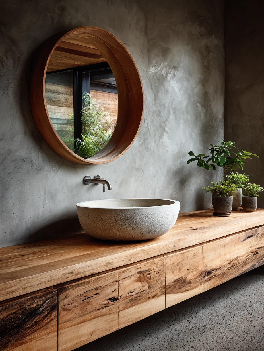 Tactile Bathroom: Elevate with Natural Stone & Wood 🪵