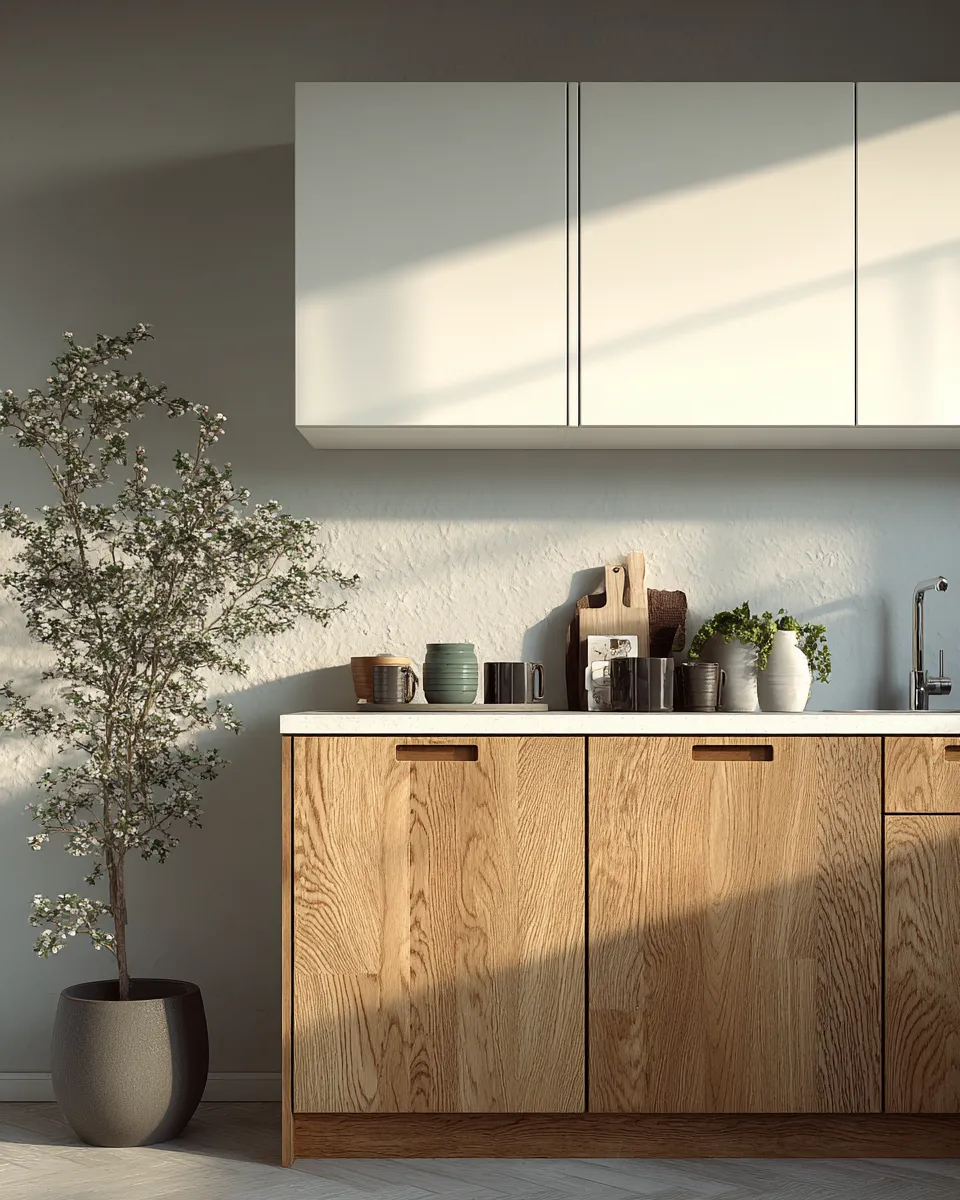 The Art of Pairing: Wood & White in Scandi Kitchen Cabinets 🪵⬜