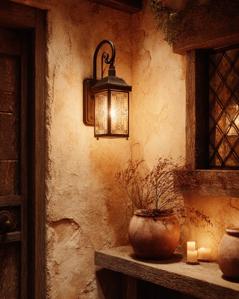 Inject a touch of rustic elegance and enduring character into your home with wrought iron accents. Its dark, substantial presence adds a grounded feel. 🥃 Consider decorative wall sconces, a heavy iron lantern, or even a simple coat rack. Wrought iron's slightly imperfect, handmade aesthetic is what makes it so special. It pairs beautifully with natural materials like wood and stone, creating a warm, inviting, and slightly rustic ambiance. Save this for your character-filled decor ideas!