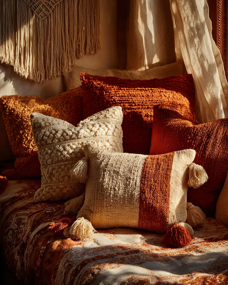 💛 Layer them on sofas, floor poufs, or even your bed.