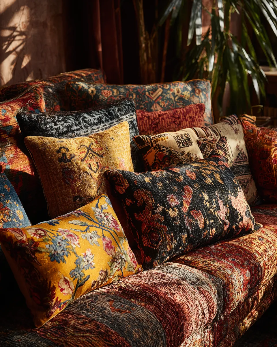 My favorite way to instantly refresh a room? Statement cushions! For a true bohemian vibe, I live for vibrant textiles. Think rich patterns, intricate embroidery, and earthy textures that tell a story.