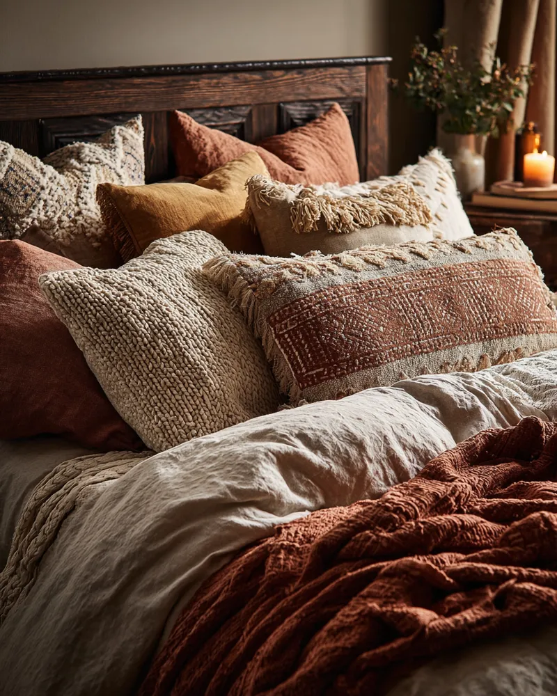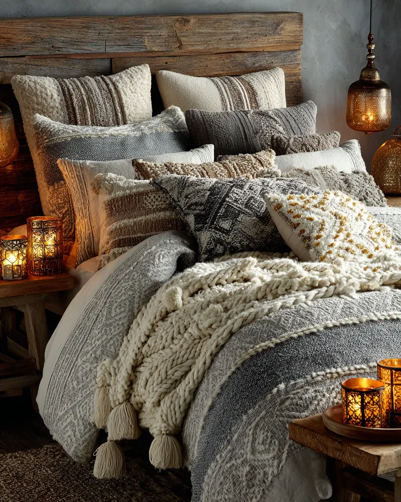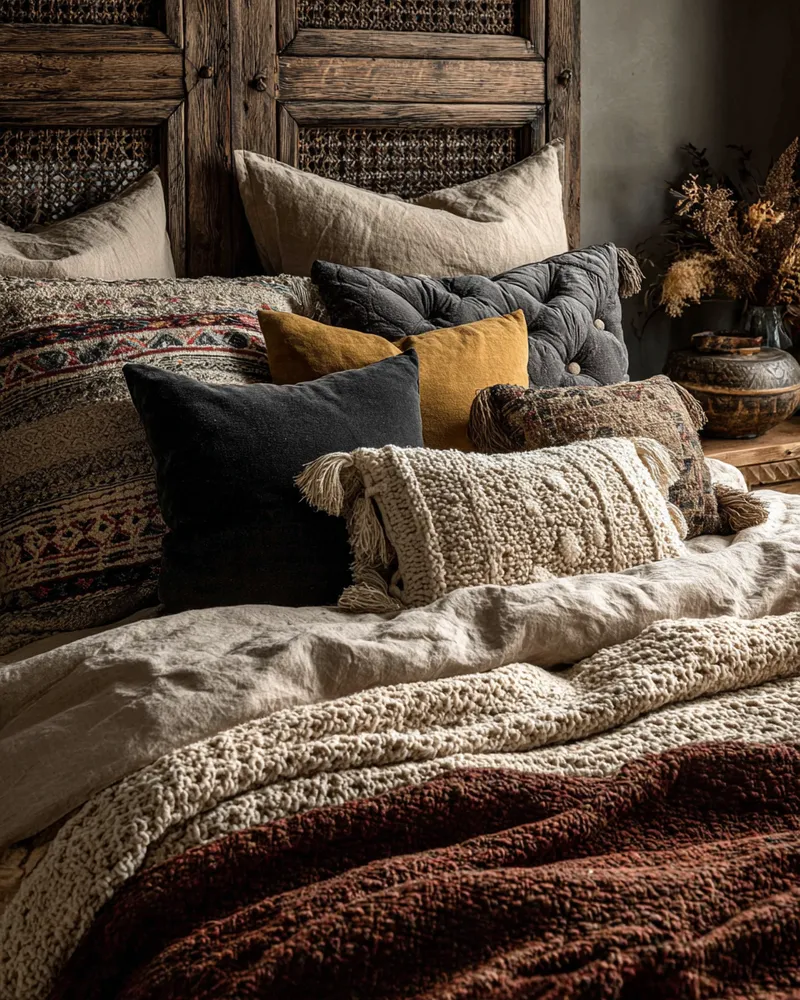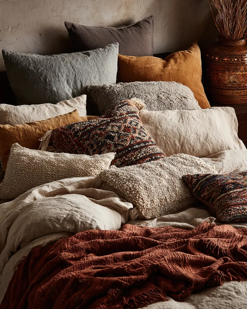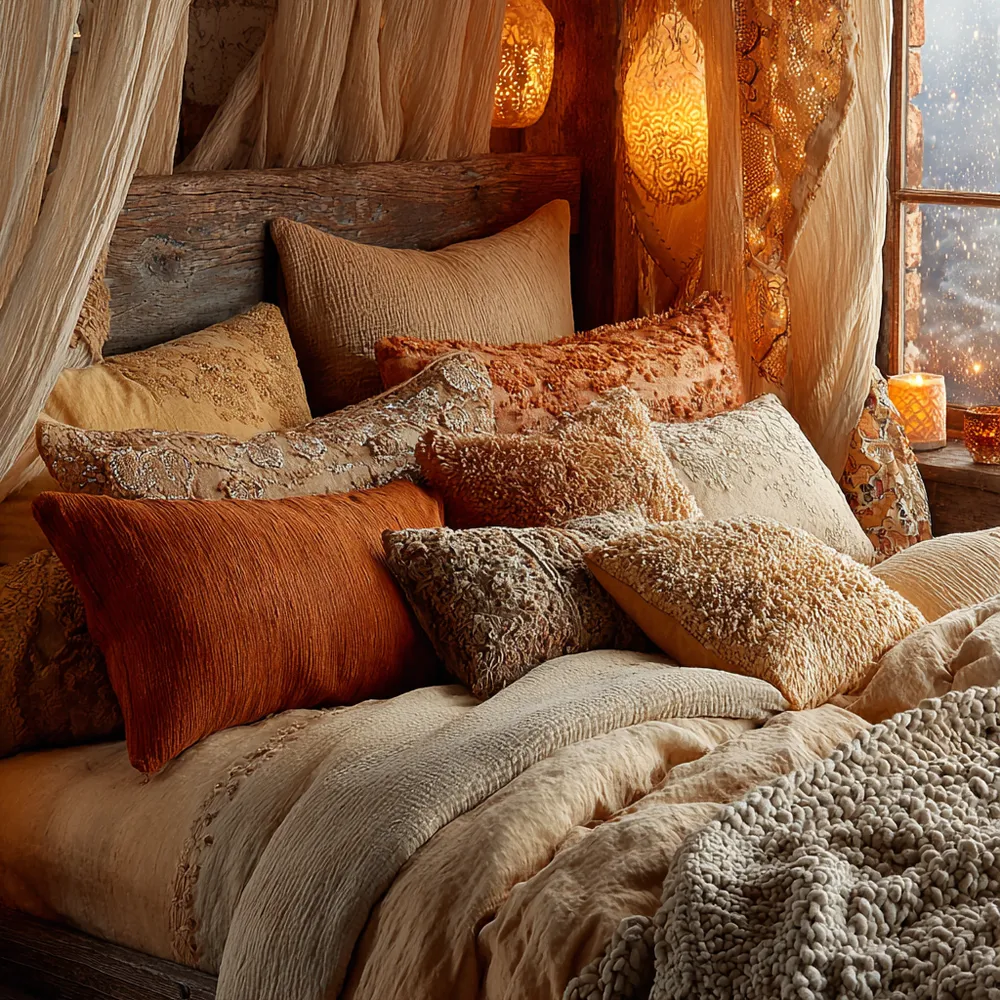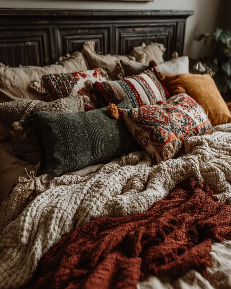 Bohemian Bedding Bliss: Layers of Texture & Comfort 🌙✨