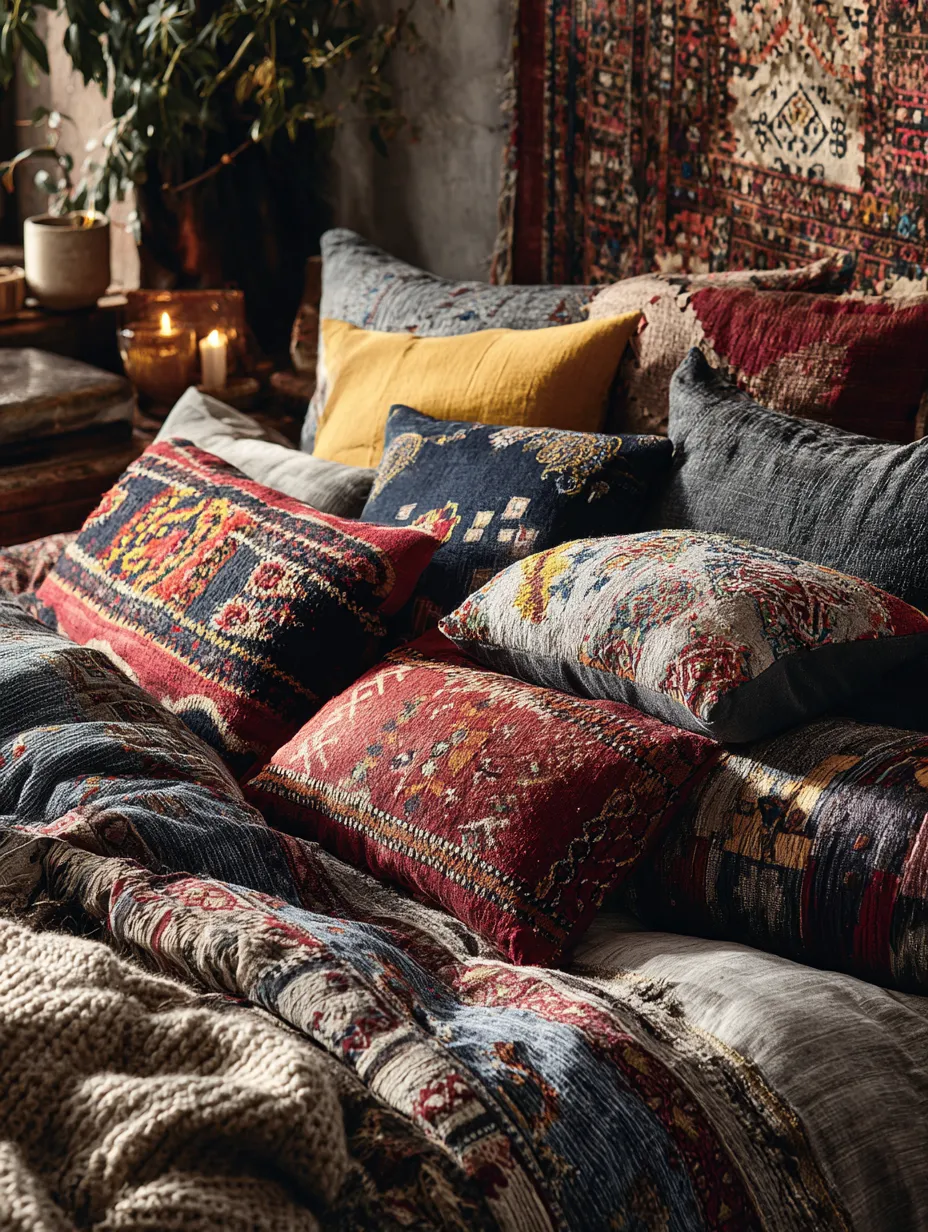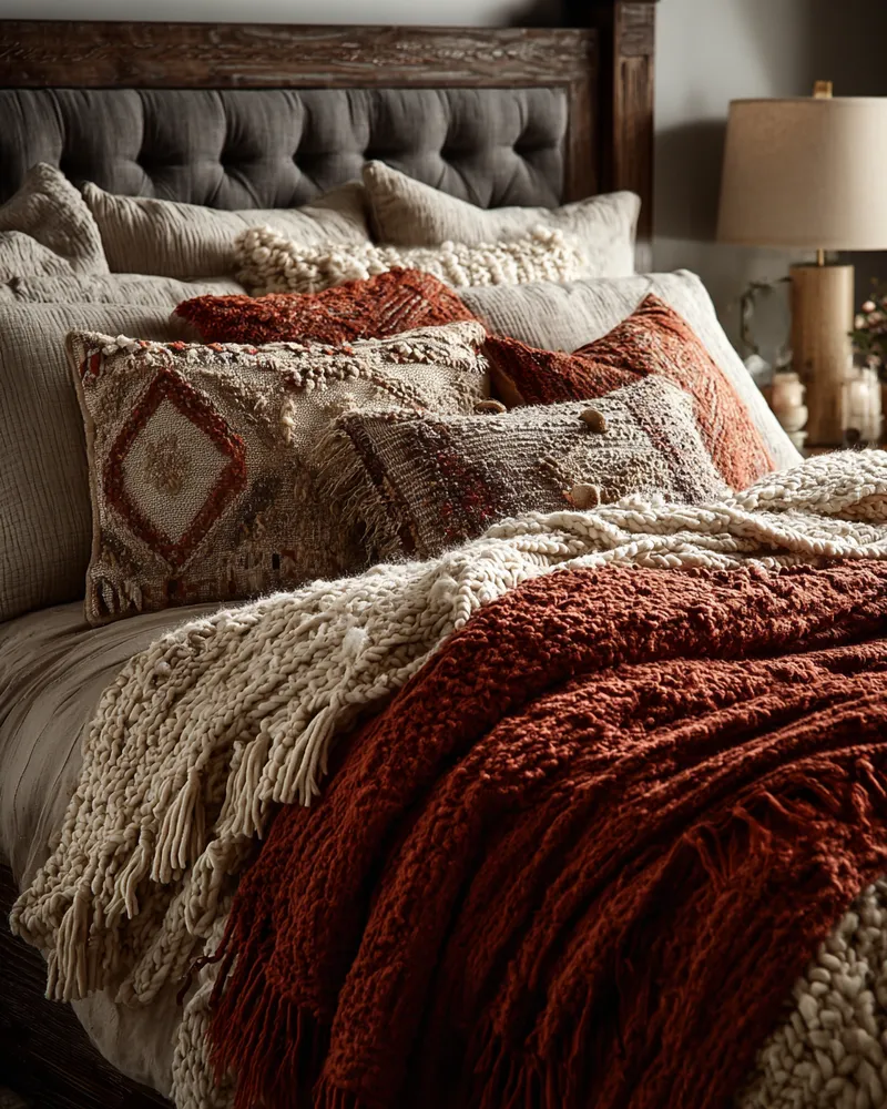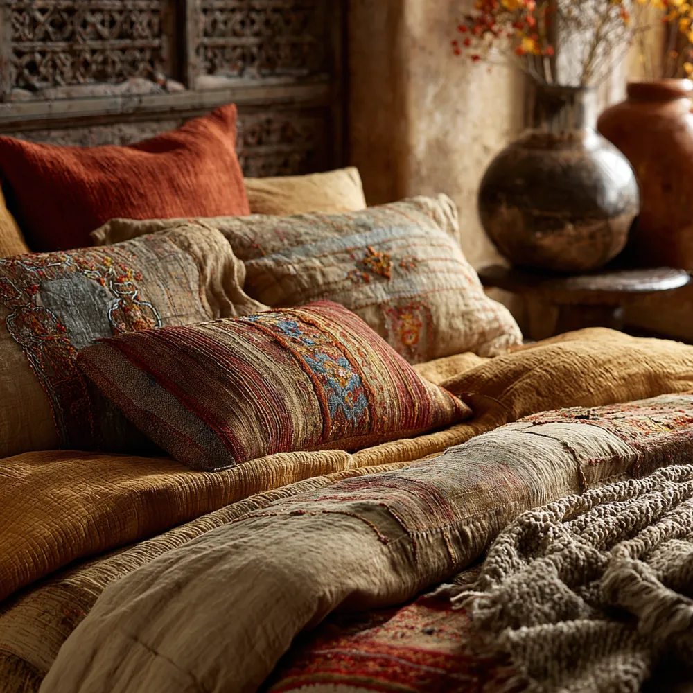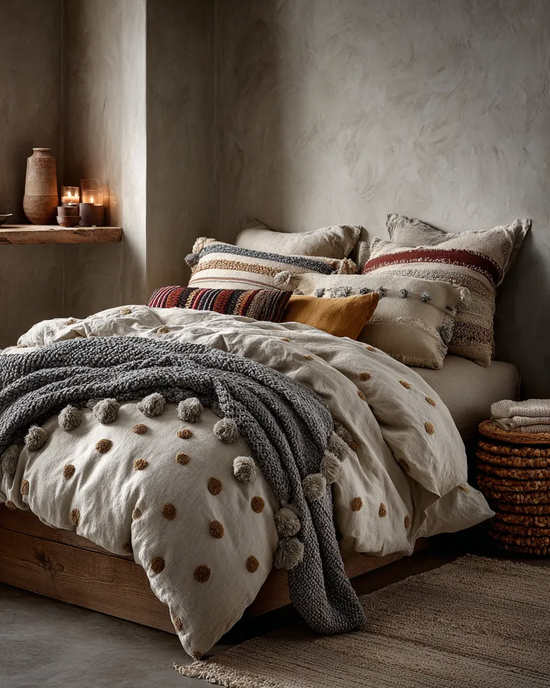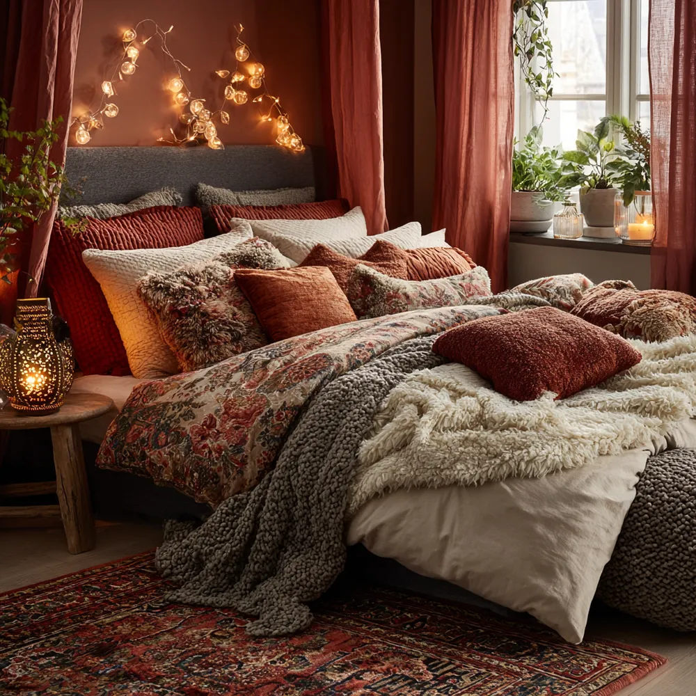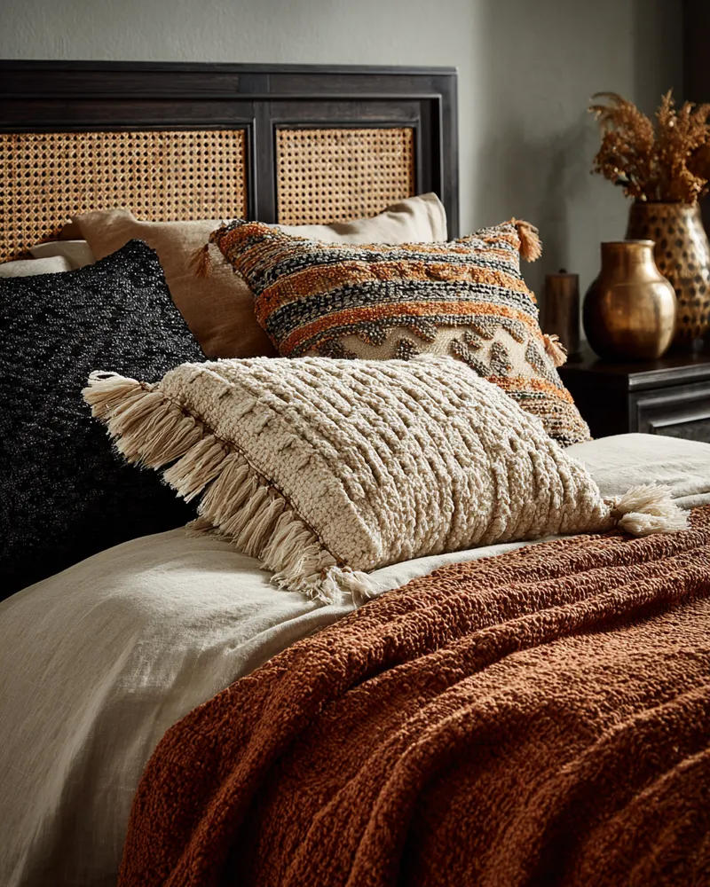 Bohemian Bedding Bliss: Layers of Texture & Comfort 🌙✨