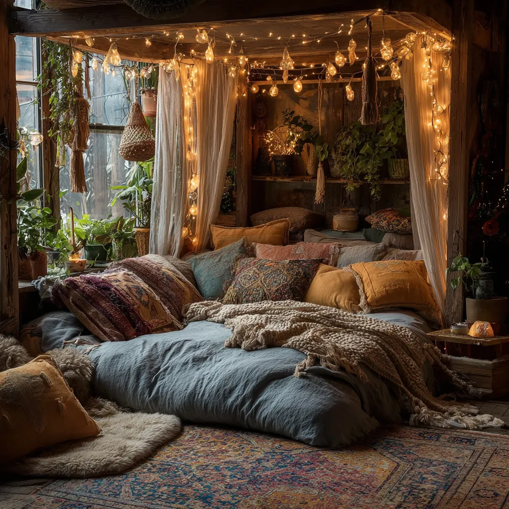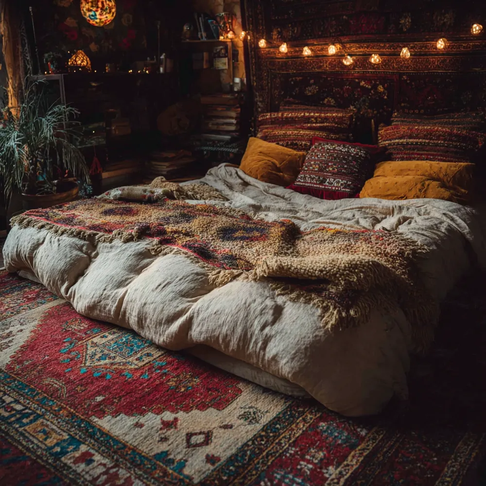 Creating a bohemian sanctuary isn't complete without a dreamy bed! It’s all about layering textures and patterns for ultimate cozy vibes. Think lush, inviting, and full of personality.