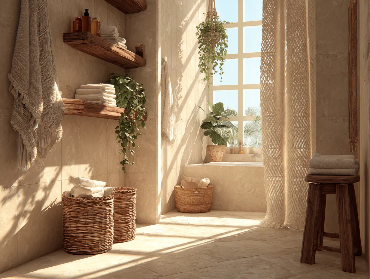 Earthy Elegance: Bohemian Bathroom Design with Natural Textures 🌿