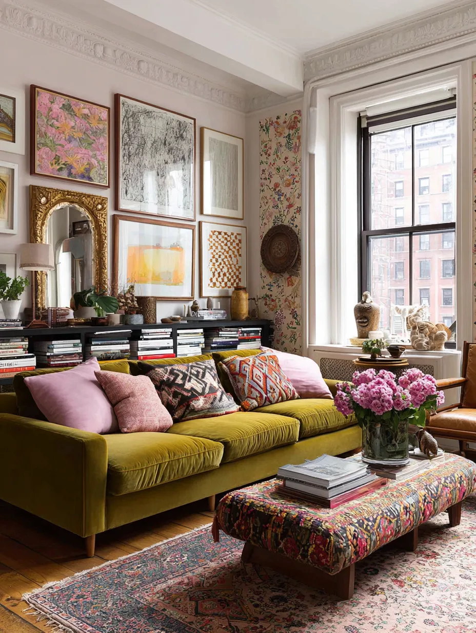One of my absolute favorite ways to express bohemian soul? A maximalist, mixed-media gallery wall! It’s a canvas for all your favorite treasures, creating a vibrant focal point.
