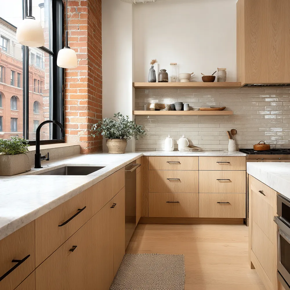 * **Light & Airy Palette:** White or light wood cabinetry with minimal hardware.