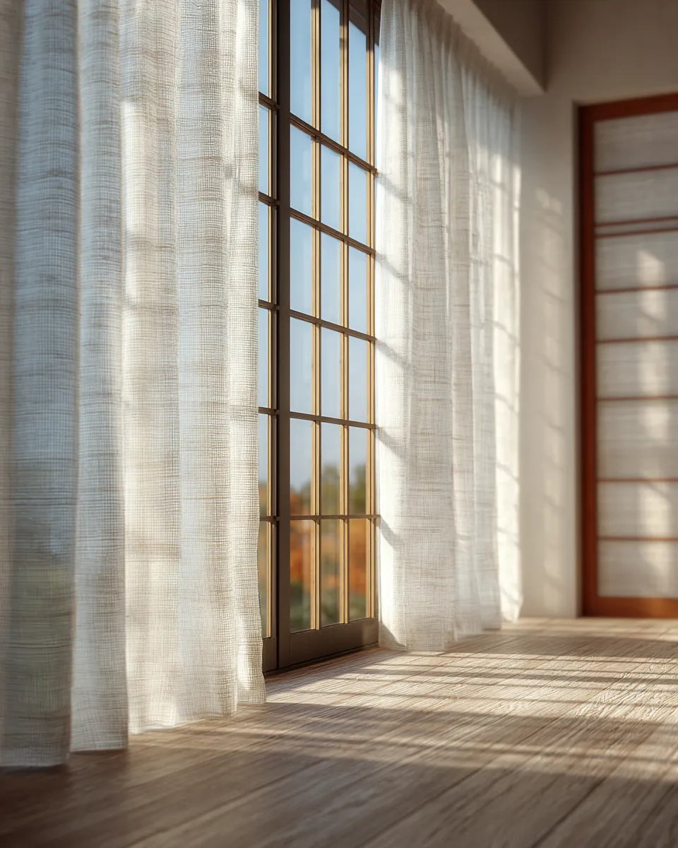 * **Sheer Linen Curtains:** For a soft, diffused glow and natural texture.