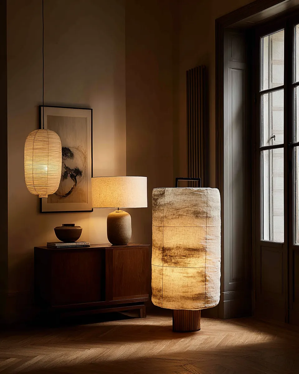 Ambiance is key in Japandi design, and lighting plays a crucial role. Think warm, diffused, and natural-inspired fixtures. 🕊️