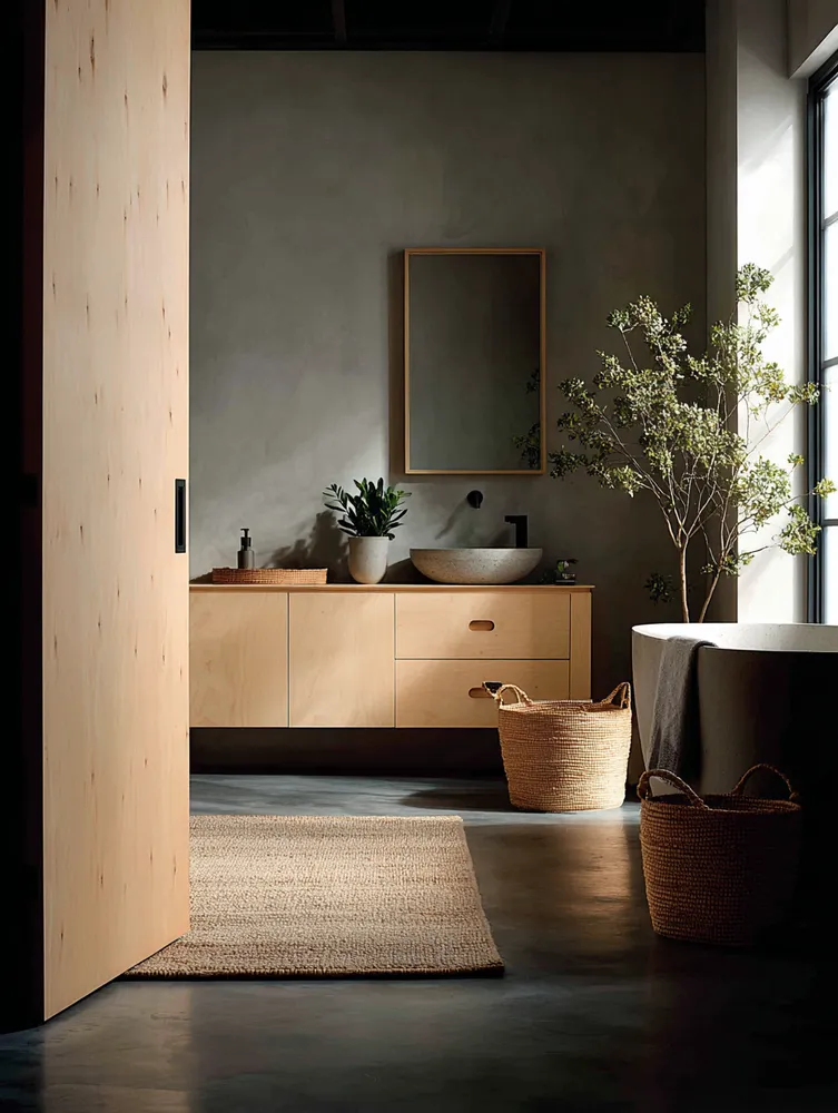 Transform your bathroom into a serene spa-like retreat with Japandi principles. Simplicity and natural elements are key. 🤍