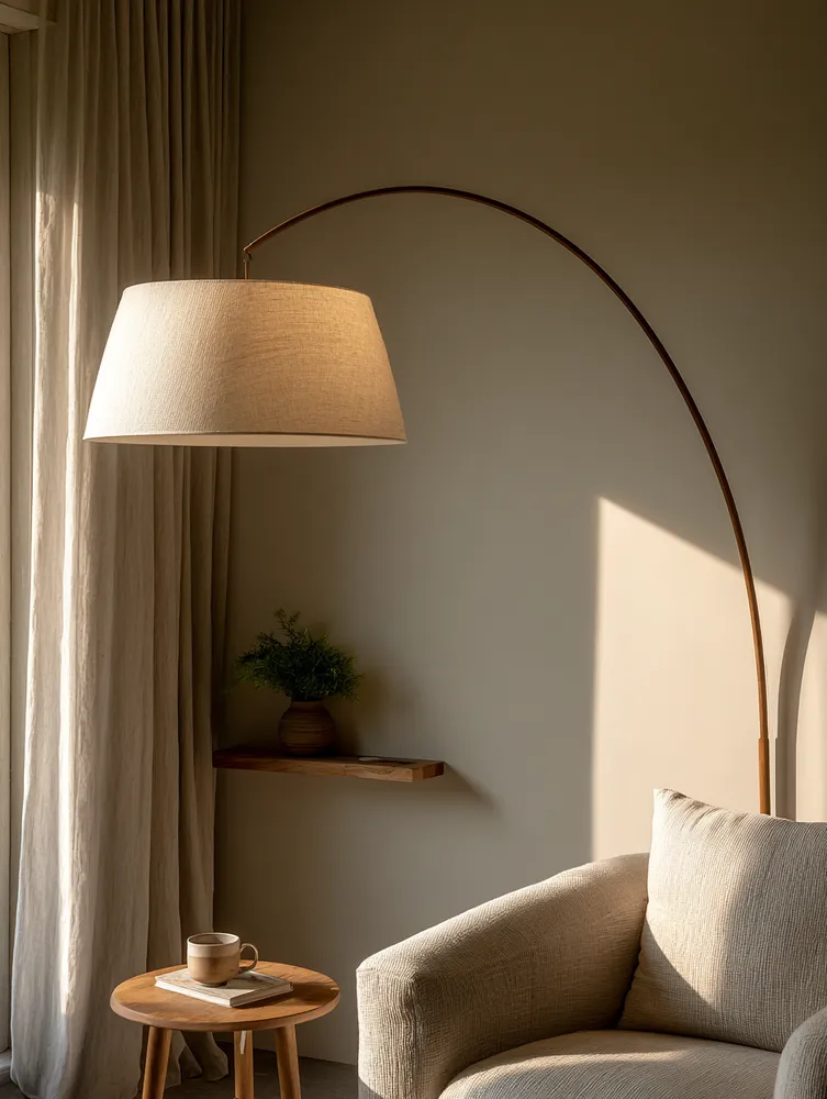 2. **Soft Lighting:** A delicate pendant light or a minimalist floor lamp.