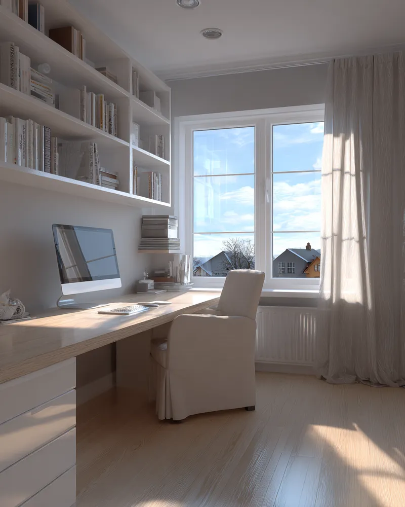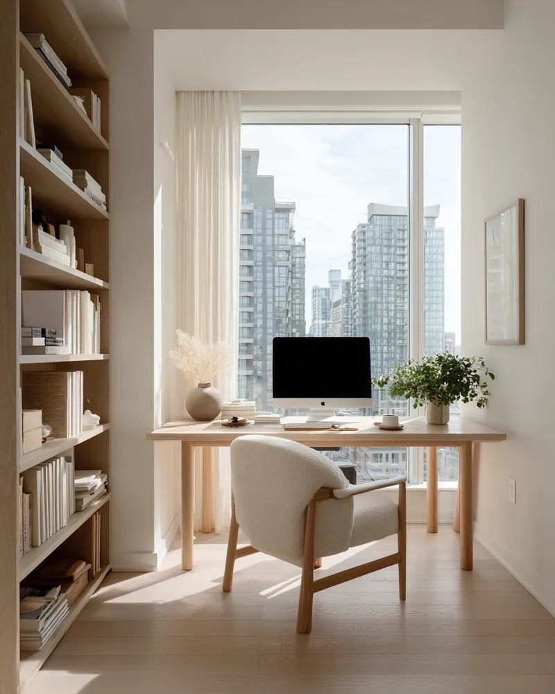 Achieve ultimate productivity and sophisticated style in your home office with a refined minimalist approach. Transform your workspace into a serene and inspiring zone. 🤍