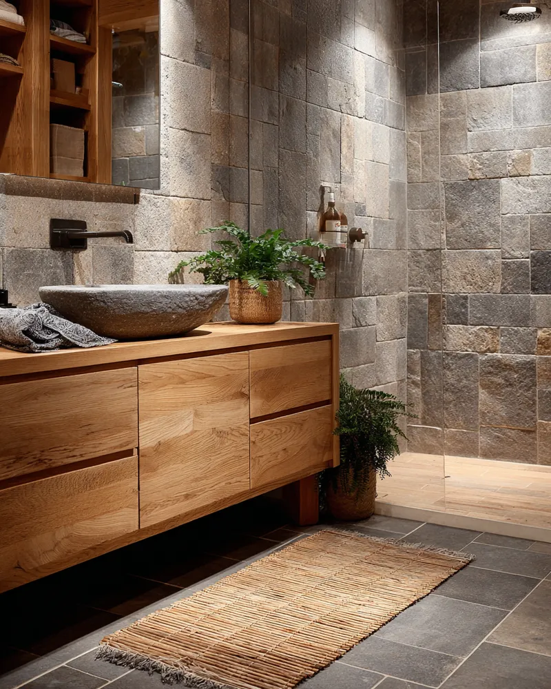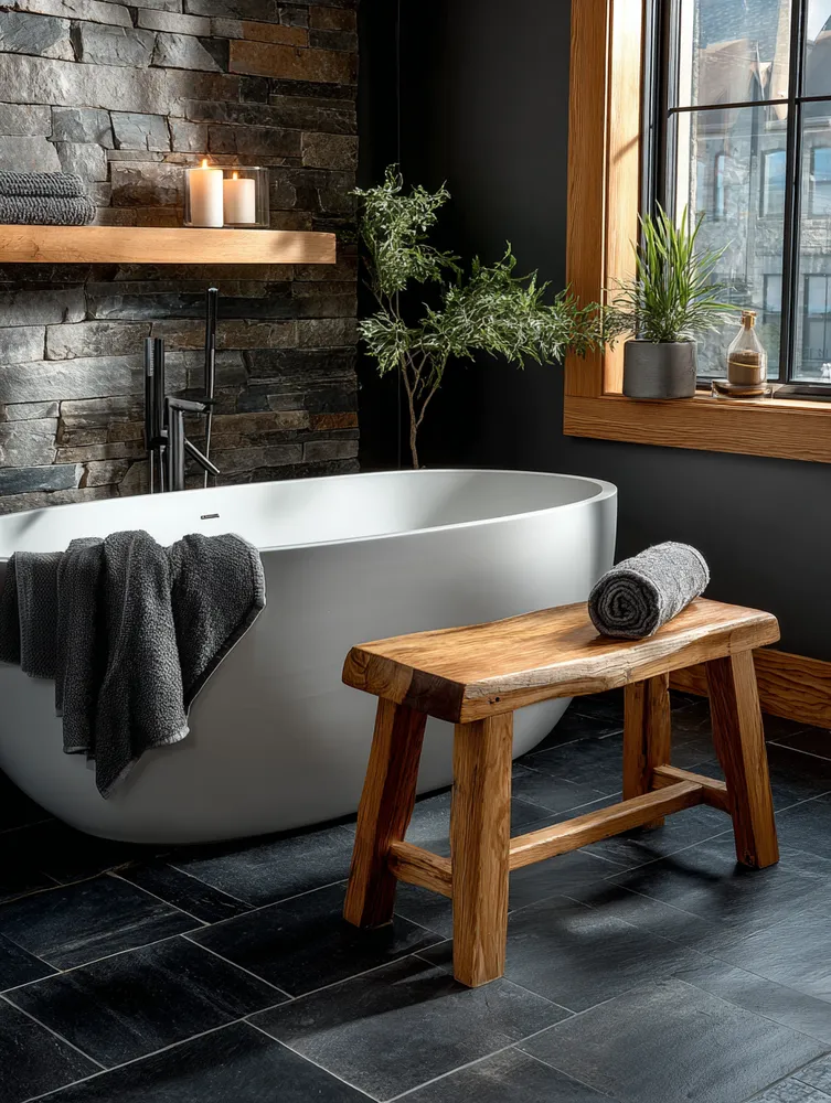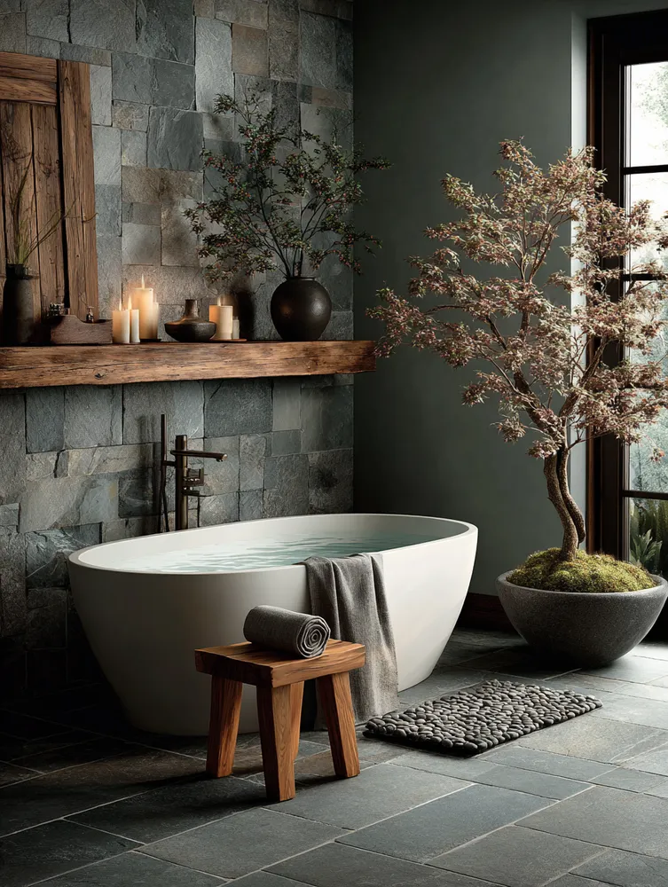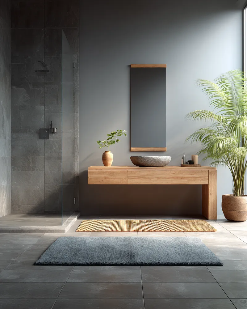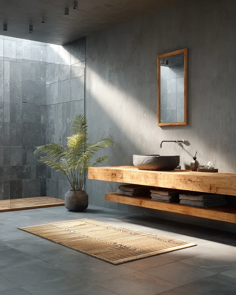 * **Natural Materials:** Wood accents (water-resistant!), stone textures, and minimalist tiling.