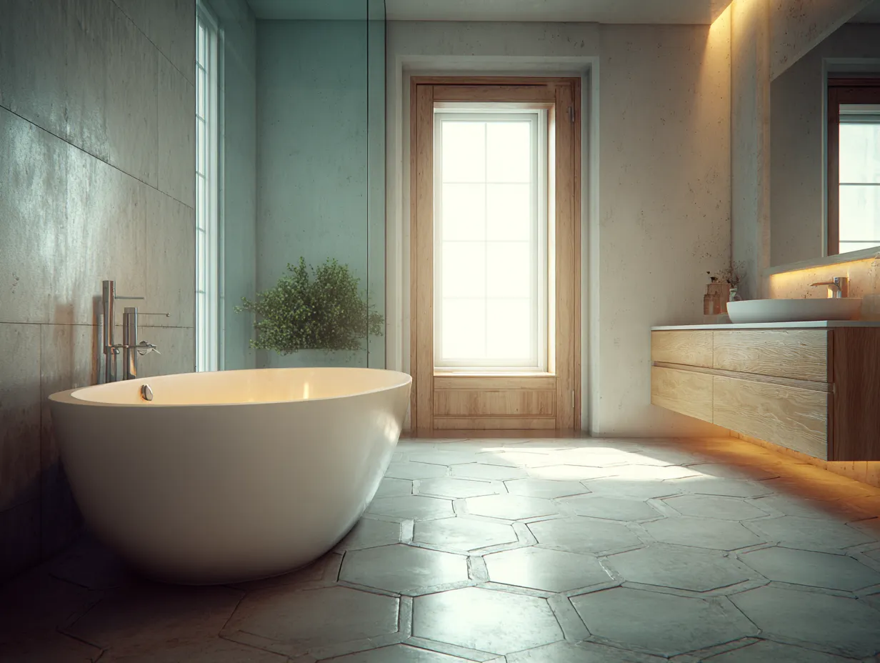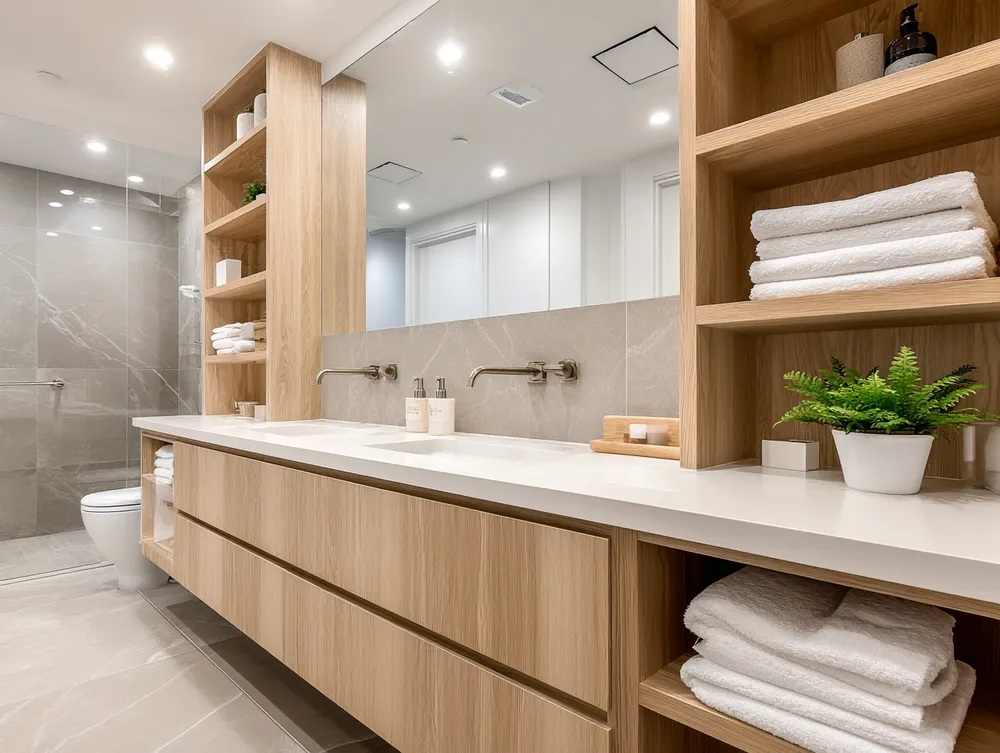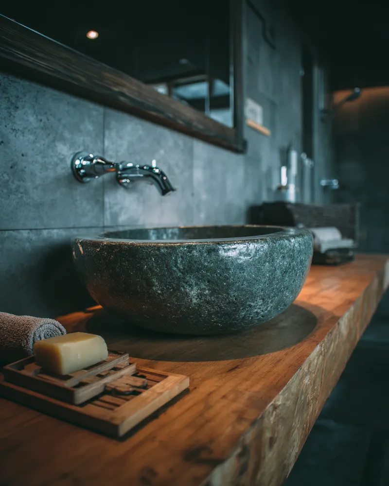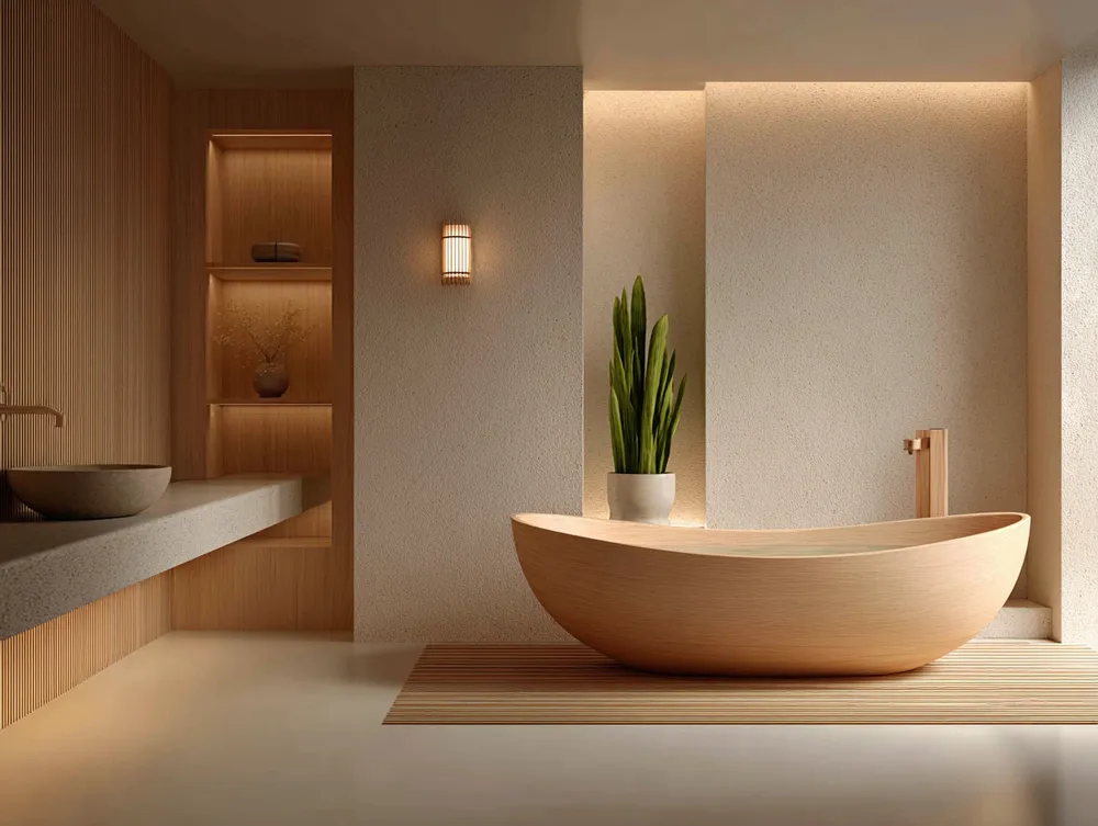 * **Natural Materials:** Wood accents (water-resistant!), stone textures, and minimalist tiling.