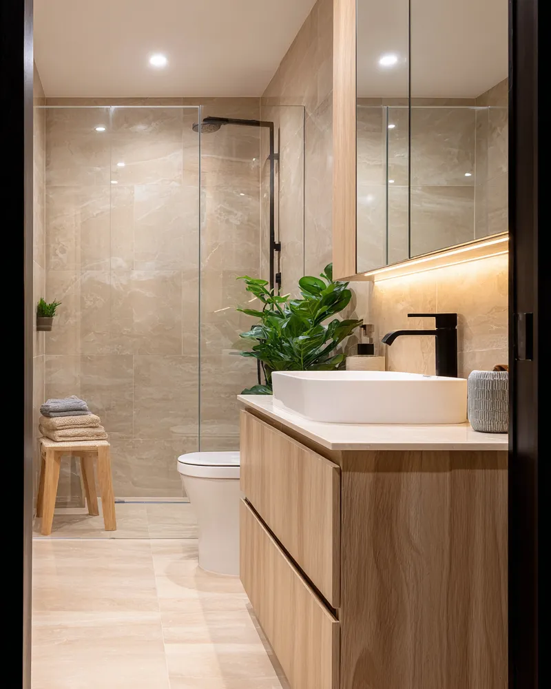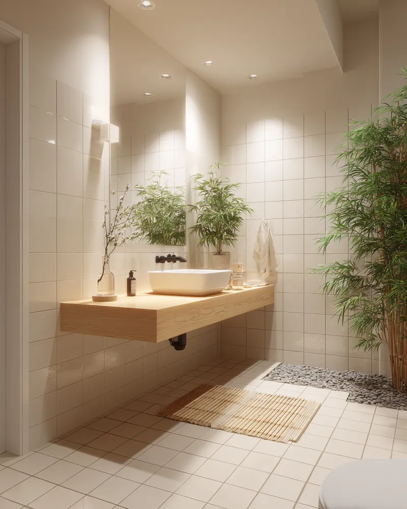 Serene Japandi Bathroom: Spa-Like Tranquility at Home 🤍