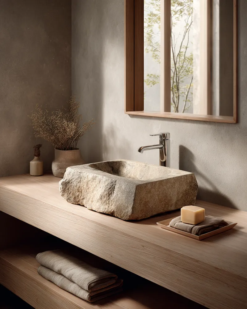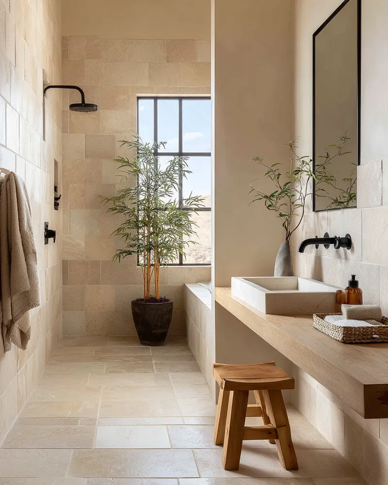 Elevate your daily routine into a calming ritual. Save for your dream bathroom oasis! 🌿 #JapandiBathroomIdeas#BathroomInspo#SpaLikeBathroom#MinimalistBathroom#HomeDecorIdeas#LuxuryBathrooms#SereneSpaces#NaturalDesign#TranquilHome#BathroomRenovation