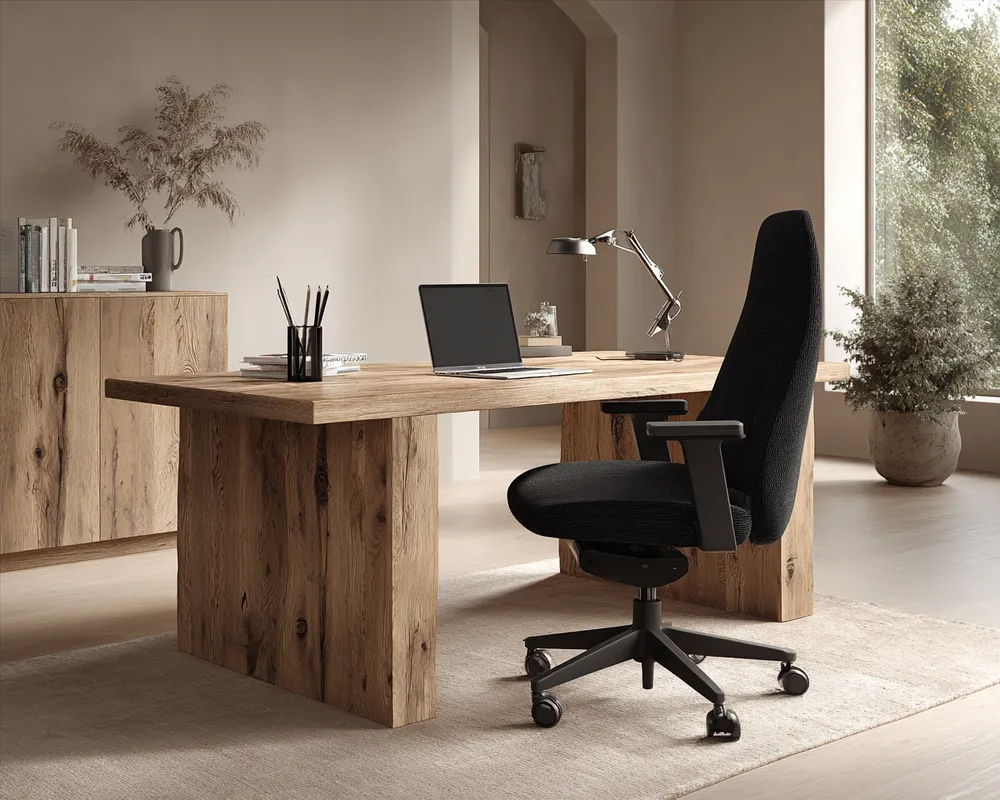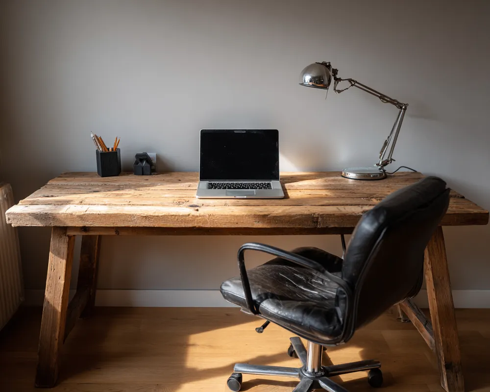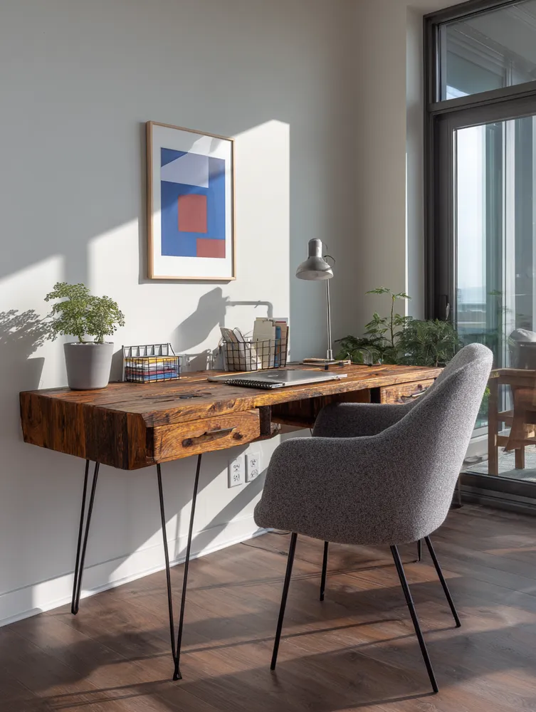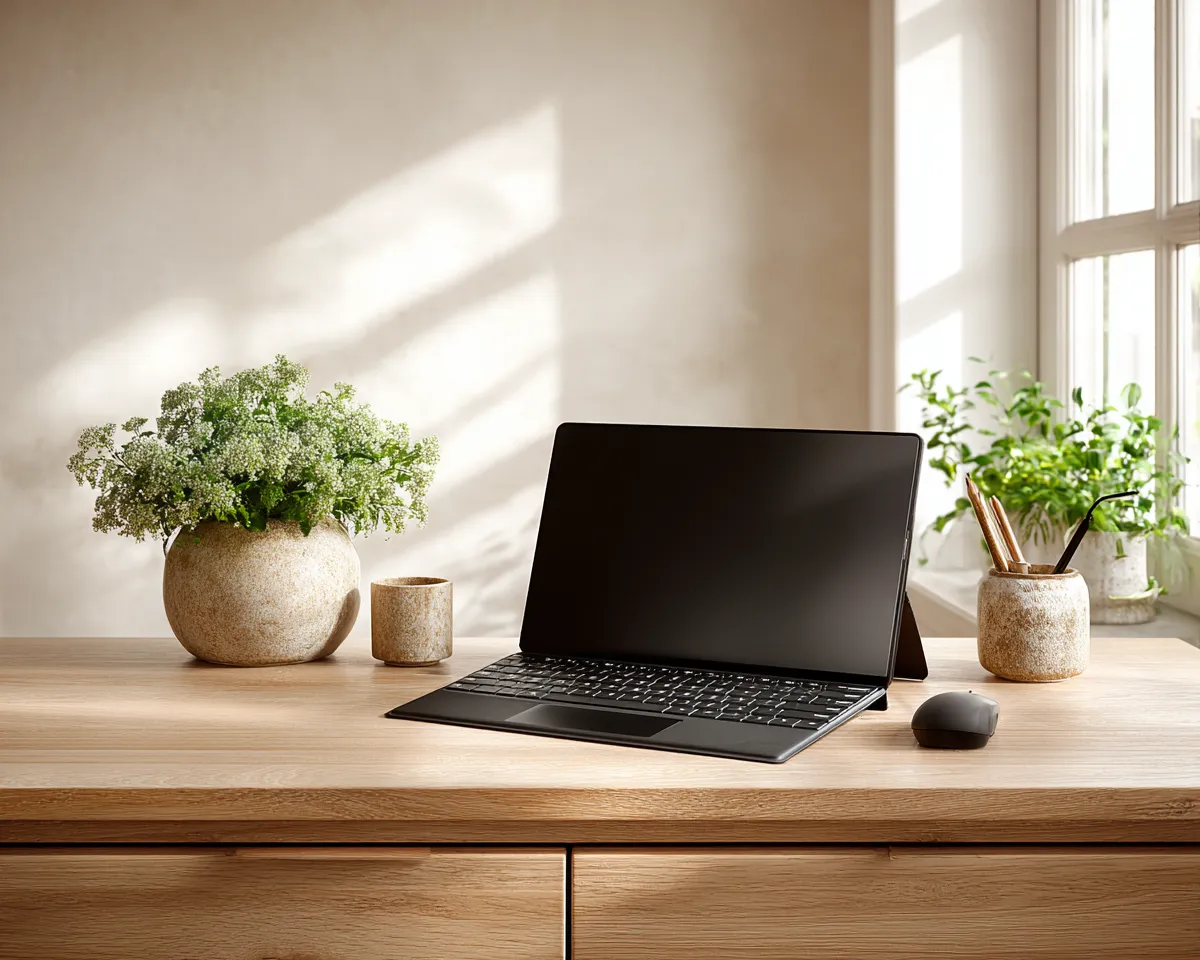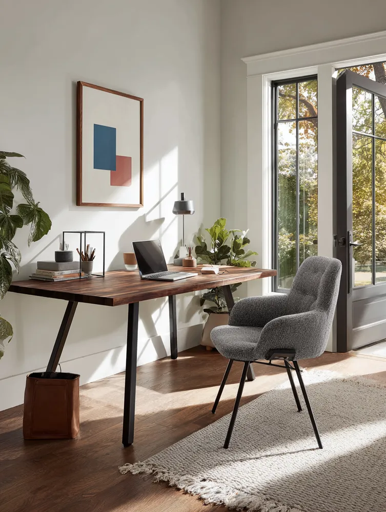* **Essential Tech:** Minimalist monitor, keyboard, and mouse.