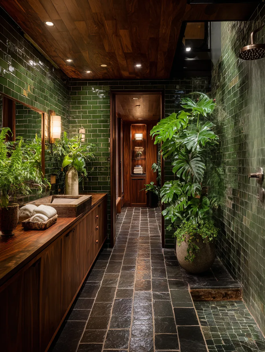 Tropical Jungle Oasis: Deep Greens & Rich Teak for a Lush Bathroom ๐ด