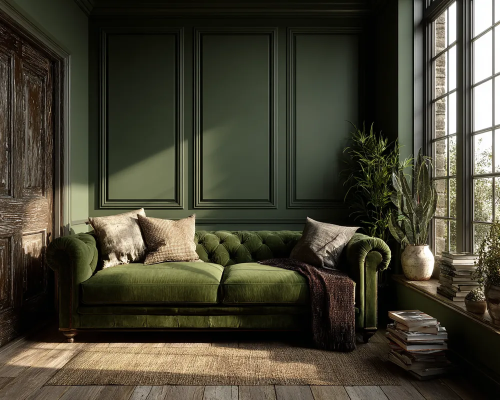 Enchanted Forest: Deep Greens, Earthy Browns & Moss Accents for a Magical Living Room 🌲✨