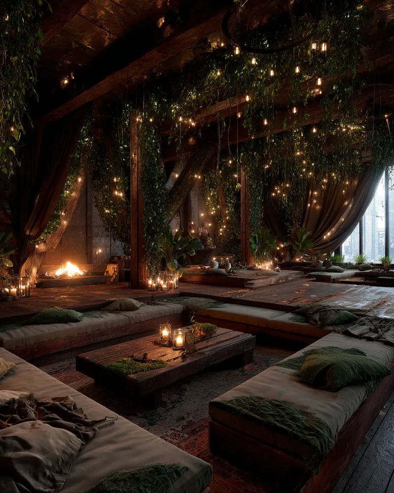 Step into a realm of natural enchantment with a living room inspired by an enchanted forest. 🌲✨ Deep, lush greens and rich earthy browns create a grounding and magical atmosphere. Imagine a velvet sofa in forest green, paired with reclaimed wood accents and textured throws that mimic moss. Soft, warm lighting will enhance the mystique, like dappled sunlight through leaves. This palette fosters a sense of wonder, coziness, and a deep connection to nature. 🤎 Your cozy hideaway awaits. 🌿 #livingroomdesign#enchantedforest#deepgreens#earthybrowns#magicalinteriors#cozyhomeideas#homedecorideas#natureinspiredhome#livingroomideas#whimsicaldecor