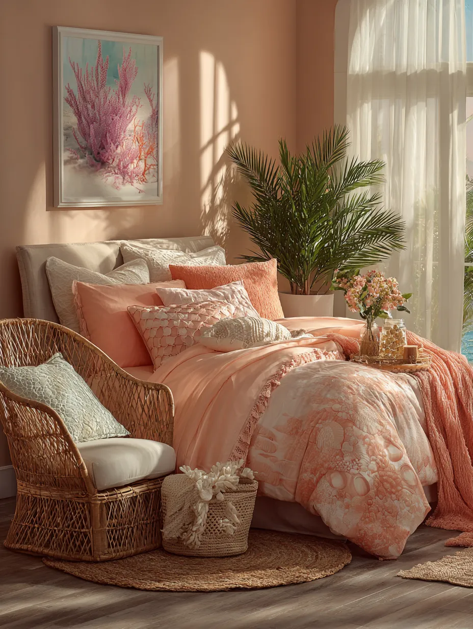 Coral Reef Dream: Soft Corals, Aquas & Sandy Beiges for a Chic Bedroom ๐