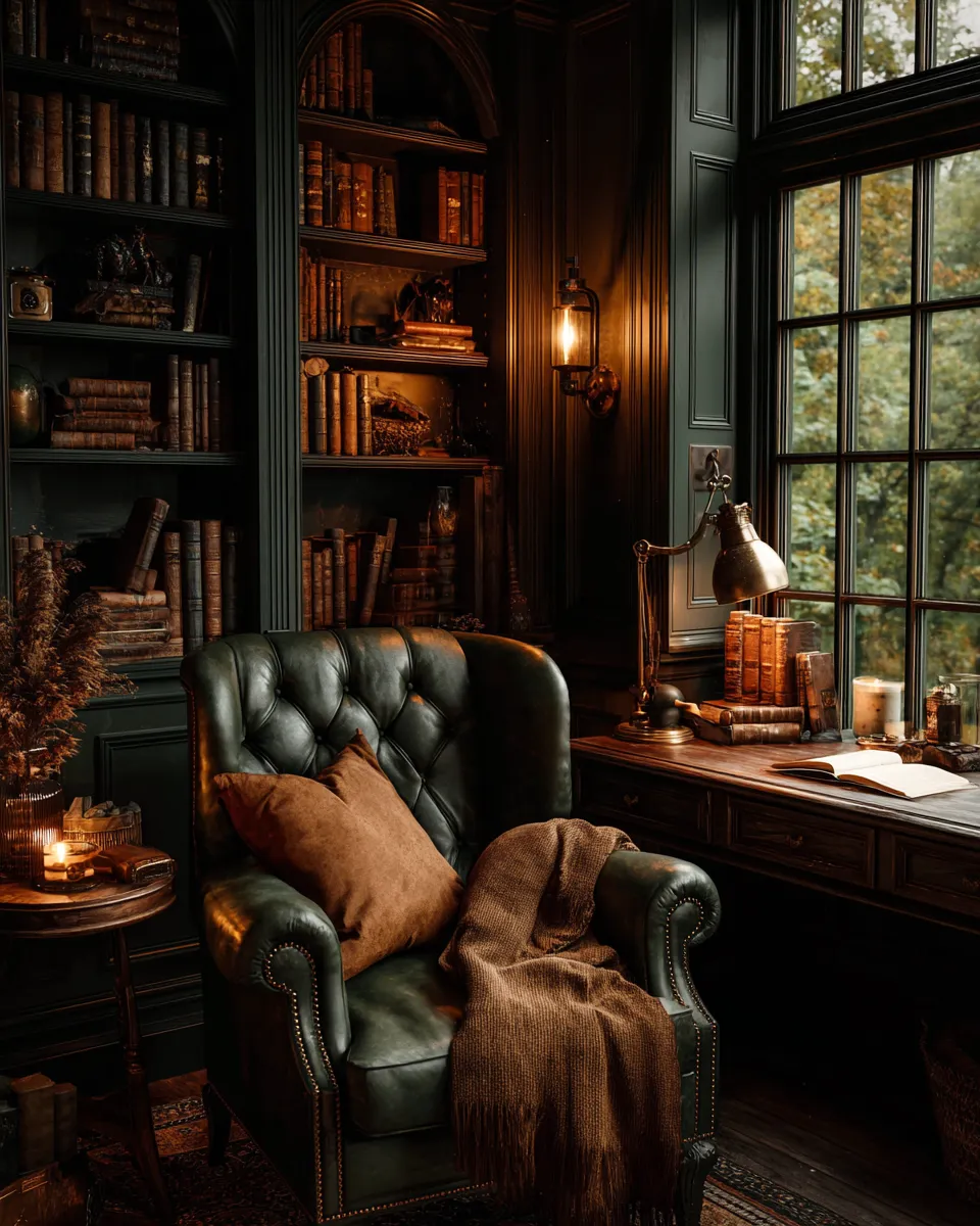 Forest Canopy Calm: Deep Emeralds & Earthy Browns for a Cozy Study 🌲📚