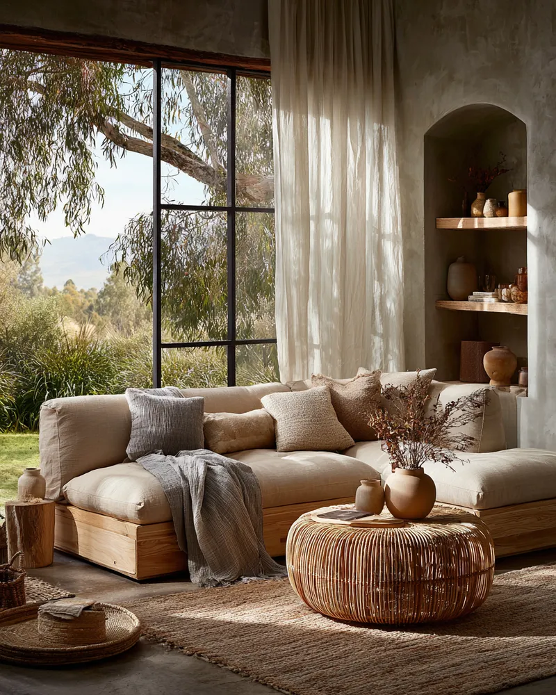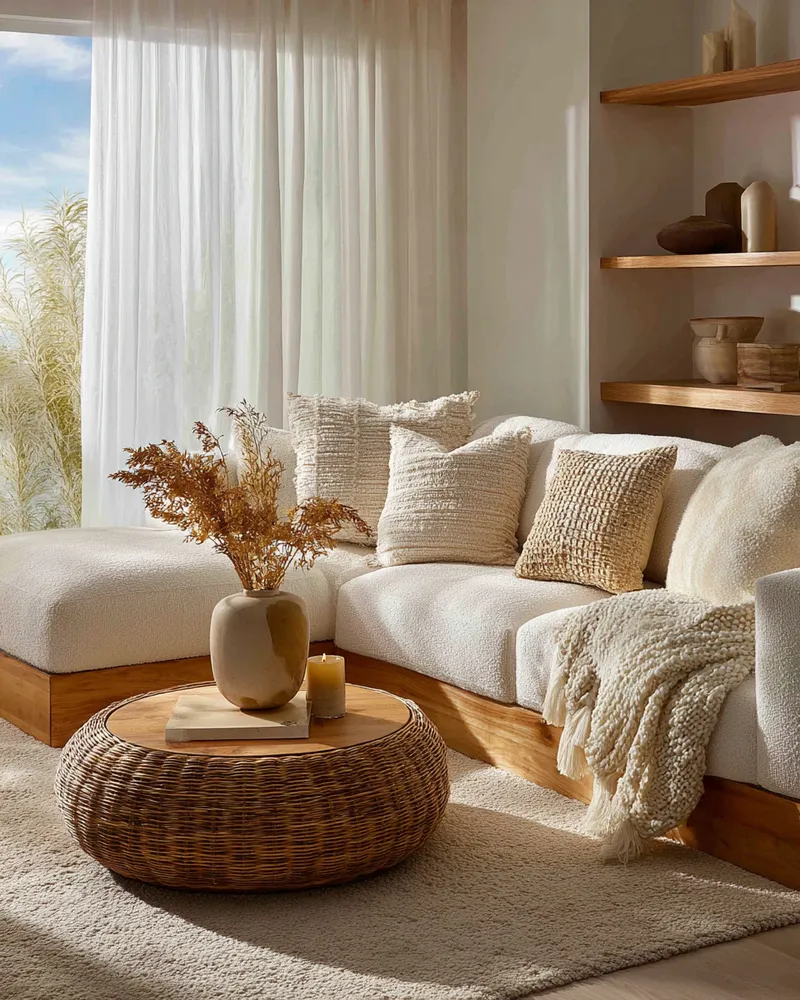 • **Natural Materials:** Wood (light oak, ash, bamboo), rattan, linen, and wool are key.