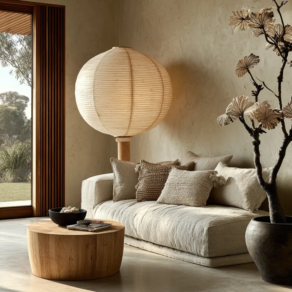 Japandi Living Room Oasis: Embrace Natural Textures & Calm