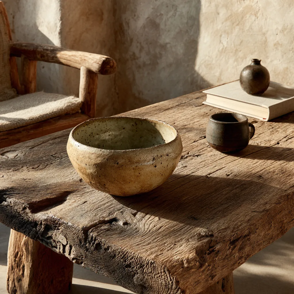 - **Ceramics**: Hand-thrown pots with subtle imperfections.