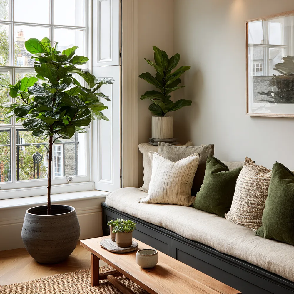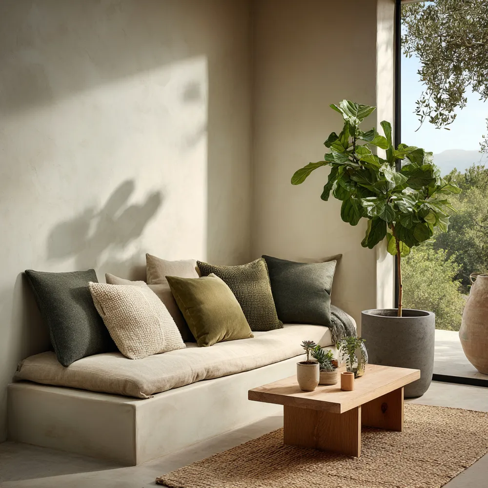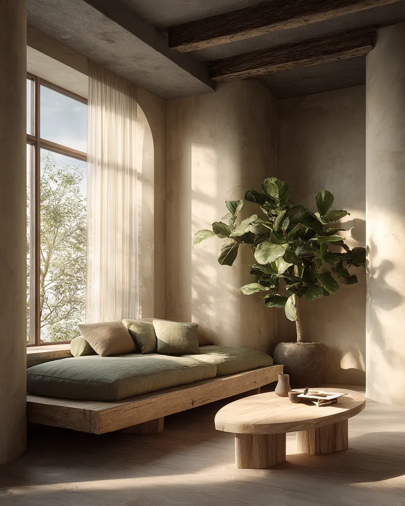 - **Indoor Plants**: Select varieties with organic shapes and calming greenery.