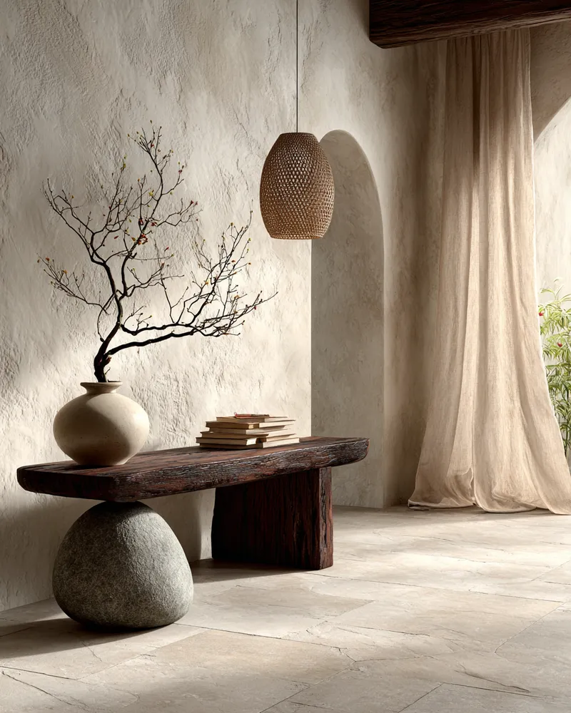 - **Natural Materials**: Wood, stone, rattan, and natural fibers.