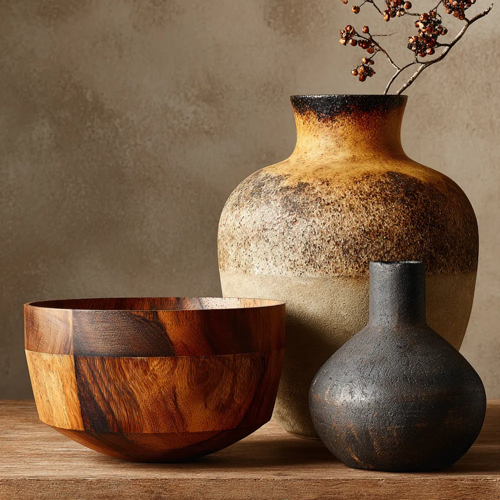 - **Hand-Thrown Vases**: With organic shapes and subtle glaze variations.