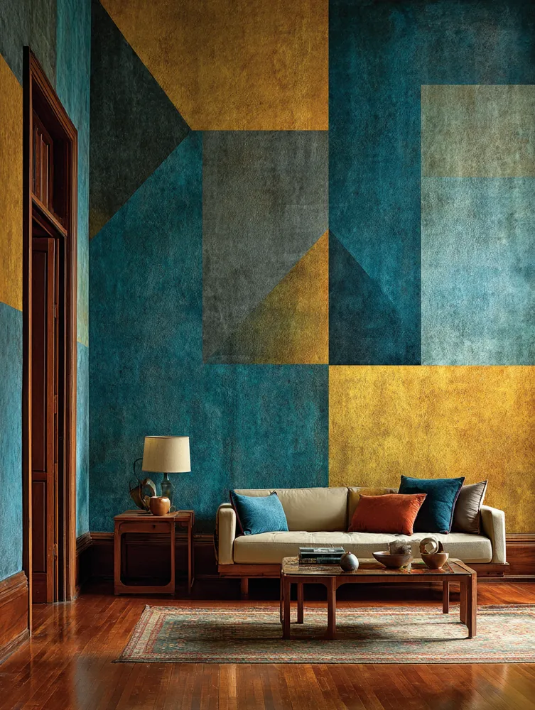 This technique involves using large, distinct blocks of color to create dynamic patterns. Itโs a modern and artful approach to wall design that can completely transform a space.