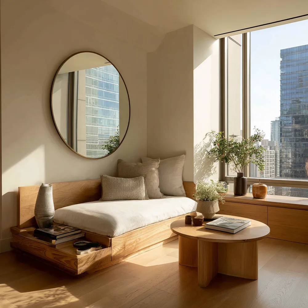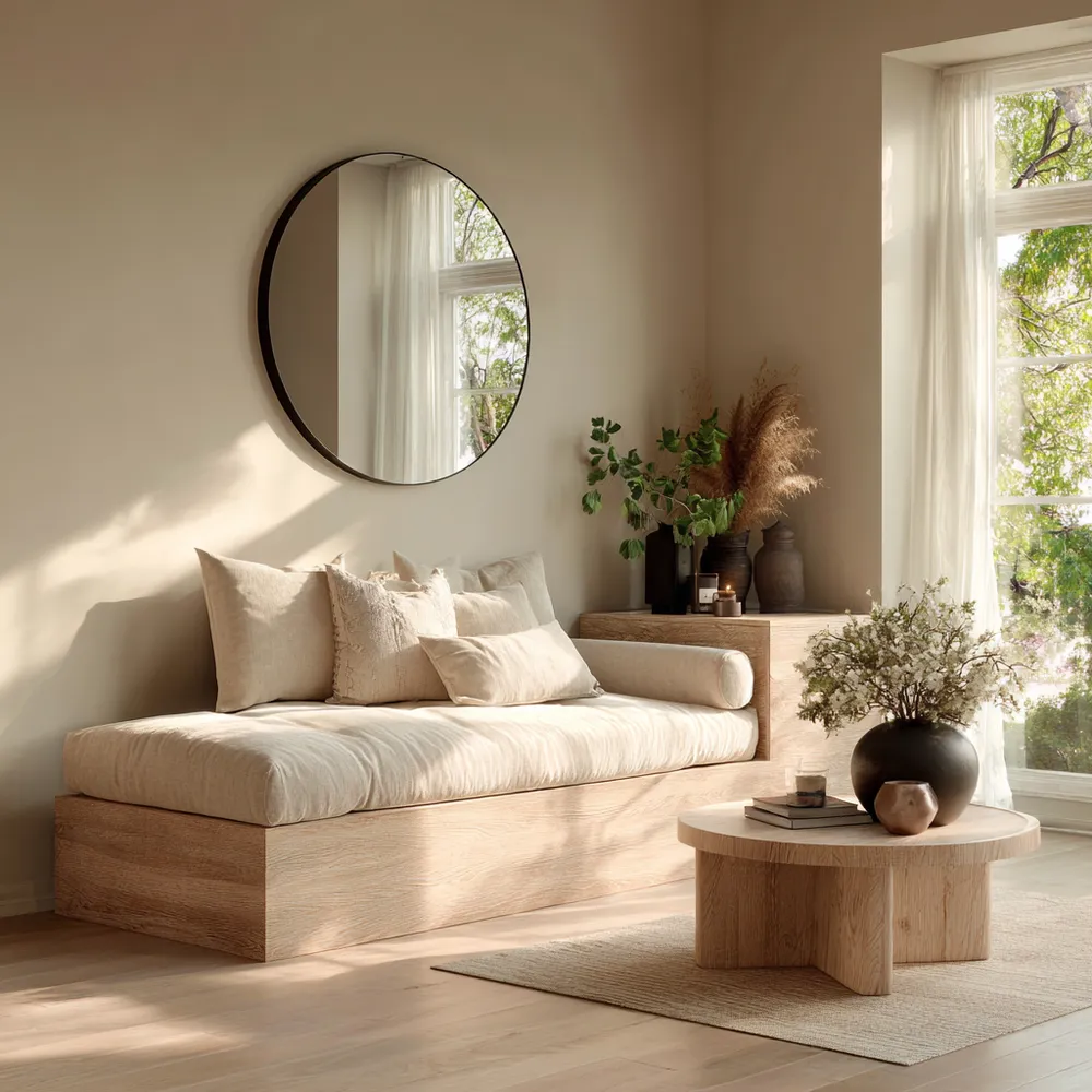 * **Neutral Color Palette:** Whites, creams, soft greys, and earthy tones create a sense of calm.