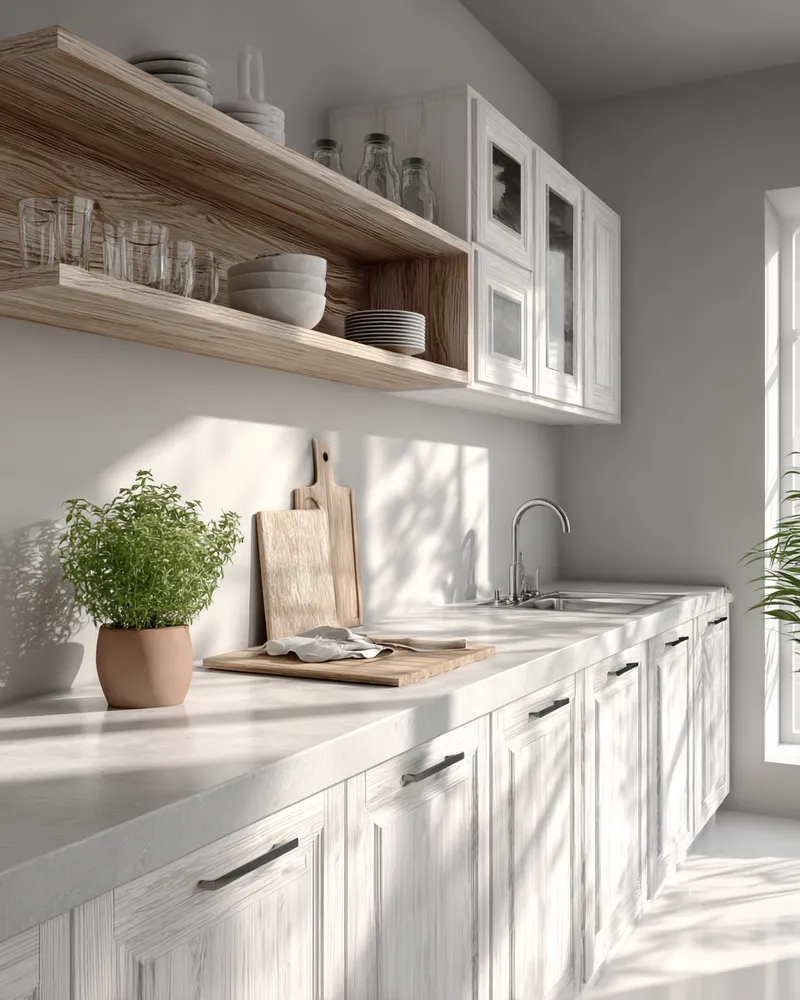 * **Clutter-Free Surfaces:** Utilize vertical storage and hidden solutions.