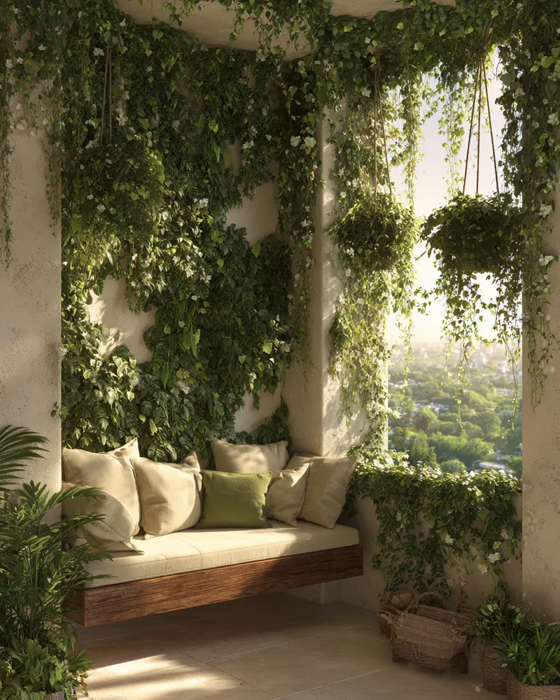 Turn your petite balcony into a serene escape with biophilic design. It’s your personal slice of nature in the city! 🌿