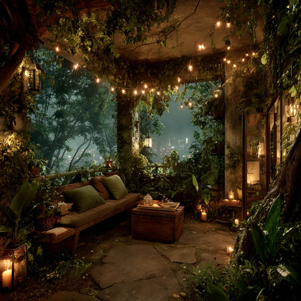 * **Soft Lighting:** Add string lights or a solar-powered lantern for ambiance.
