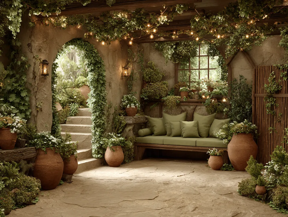 * **Natural Materials:** Incorporate wood seating, bamboo screens, or stone accents.