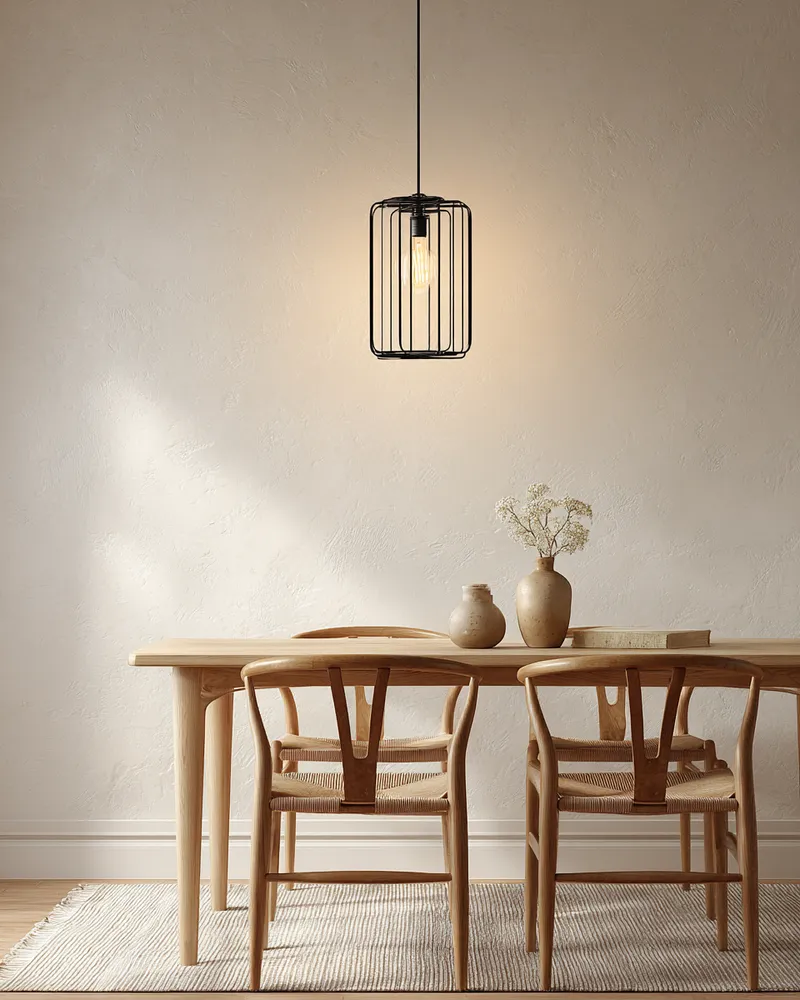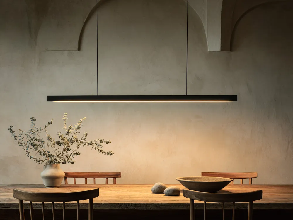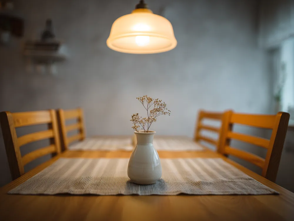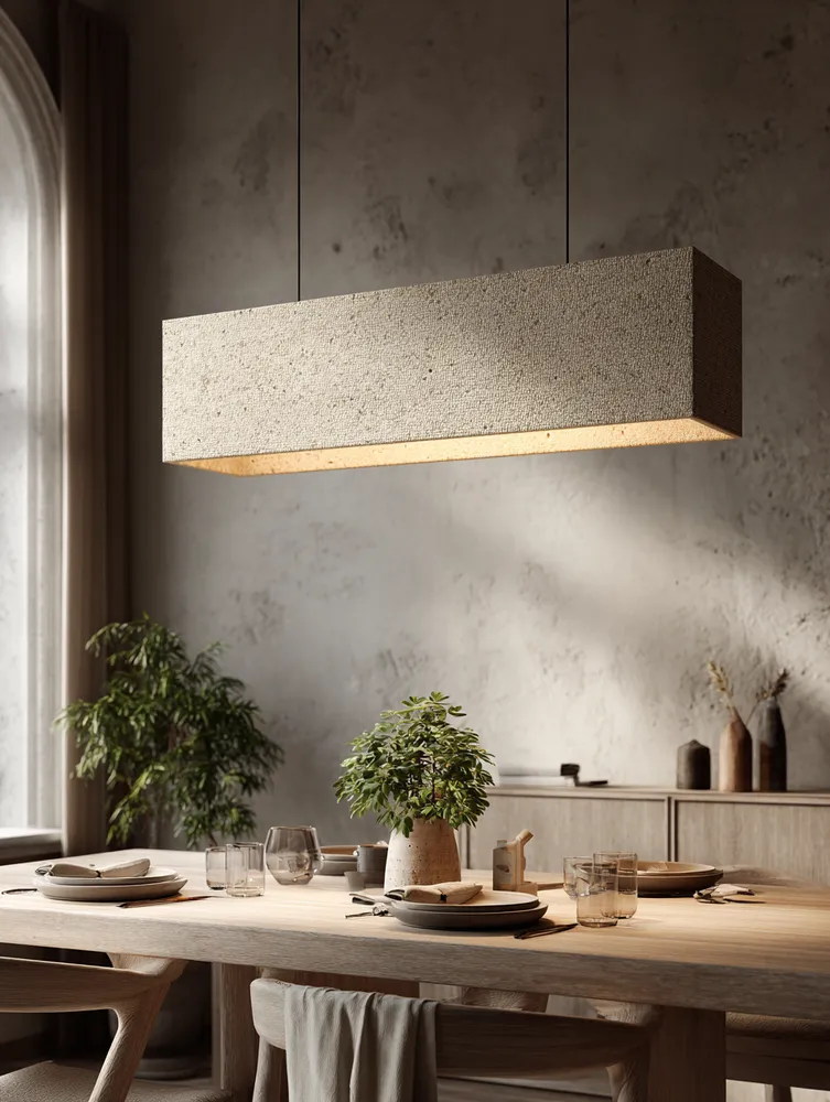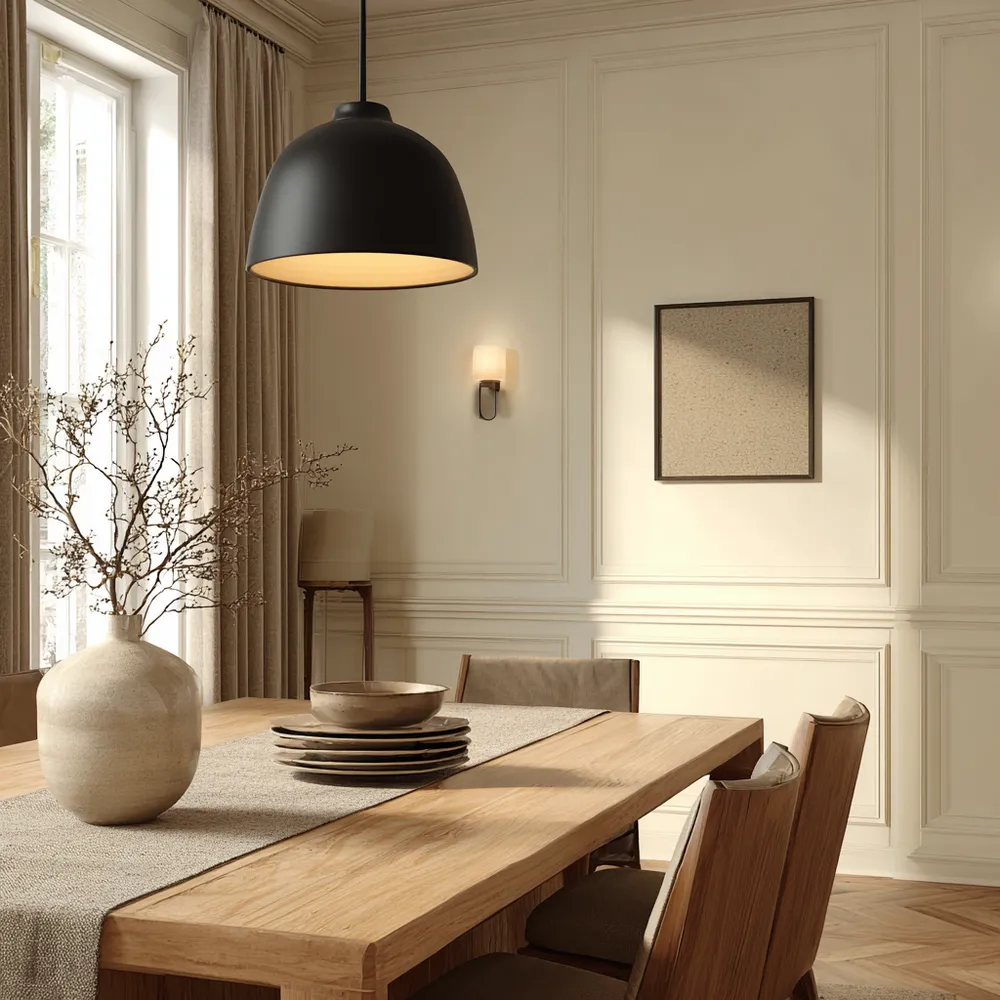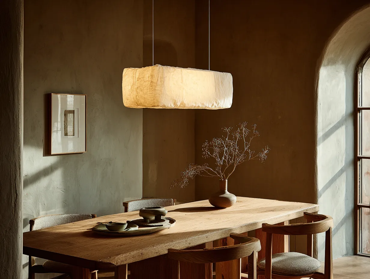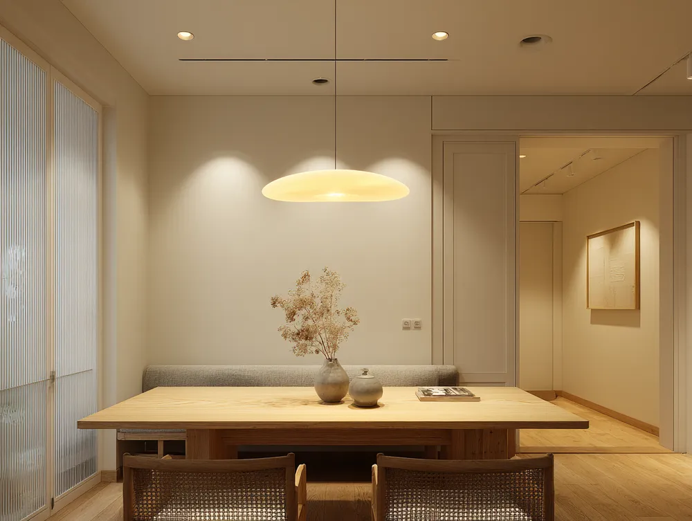 • **Soft Pendant Lighting:** Over the table for ambient warmth.