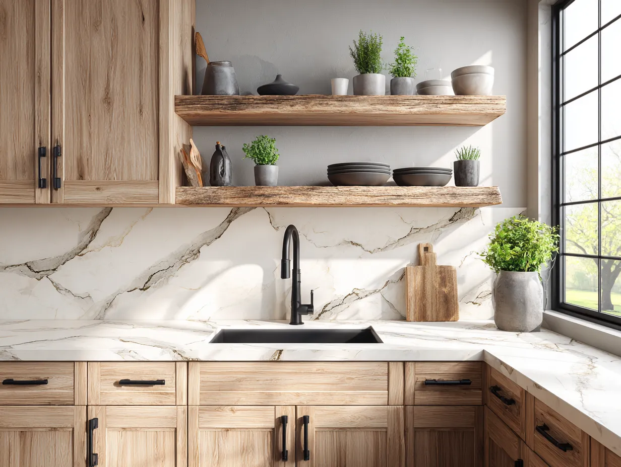 Bring the calm of Japandi design to your kitchen. 🌿 Focus on functional simplicity and natural materials. Opt for unpainted wood cabinetry or matte finishes in neutral tones. Minimalist hardware and decluttered countertops are key. Incorporate natural elements like bamboo utensils or a small herb garden. Good, natural lighting is essential for a bright yet serene cooking environment. Think about open shelving to display beautiful ceramics or select matte-finished appliances for a seamless look.