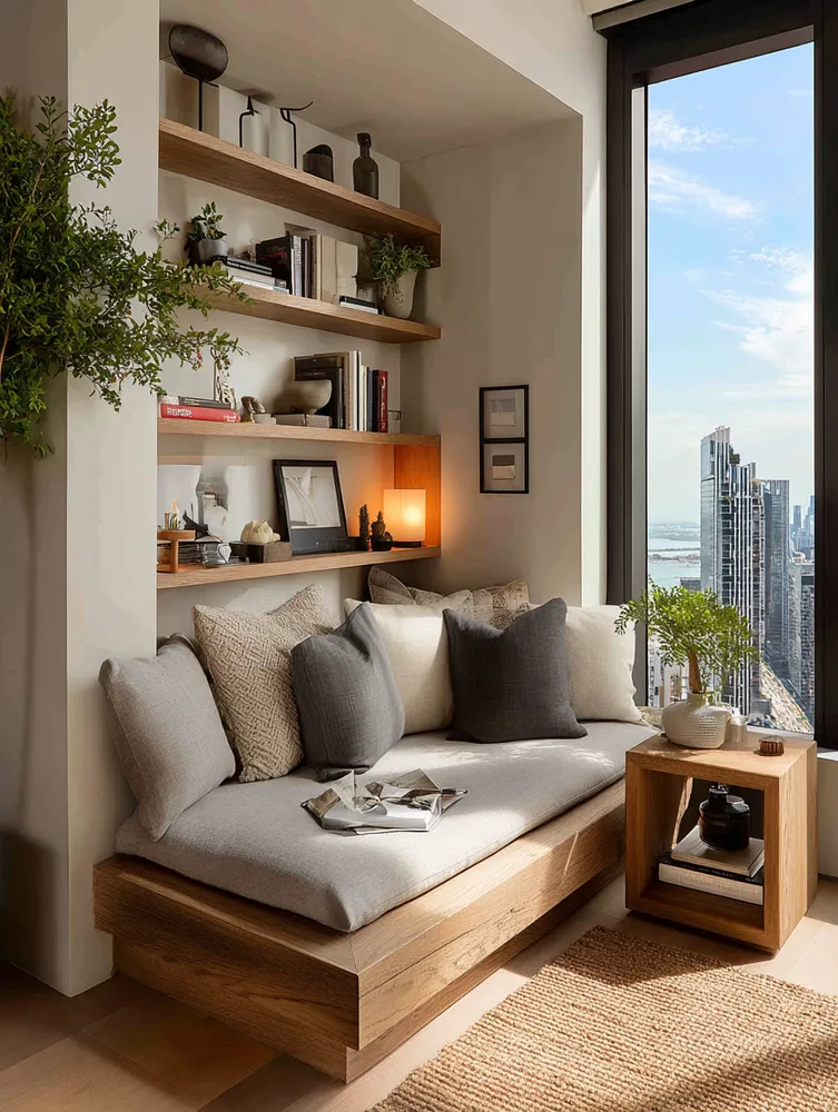 Maximize your small space. Save for inspiration! #japandi#japandidecor#smallspaceliving#cozycorners#minimalistdecor#smallspacesolutions#decorinspiration#apartmenttherapy#homeideas#designhacks