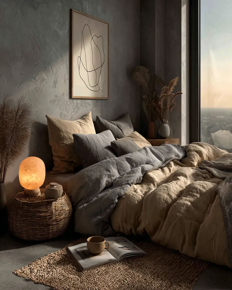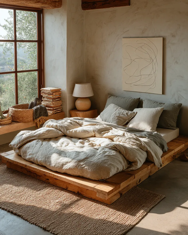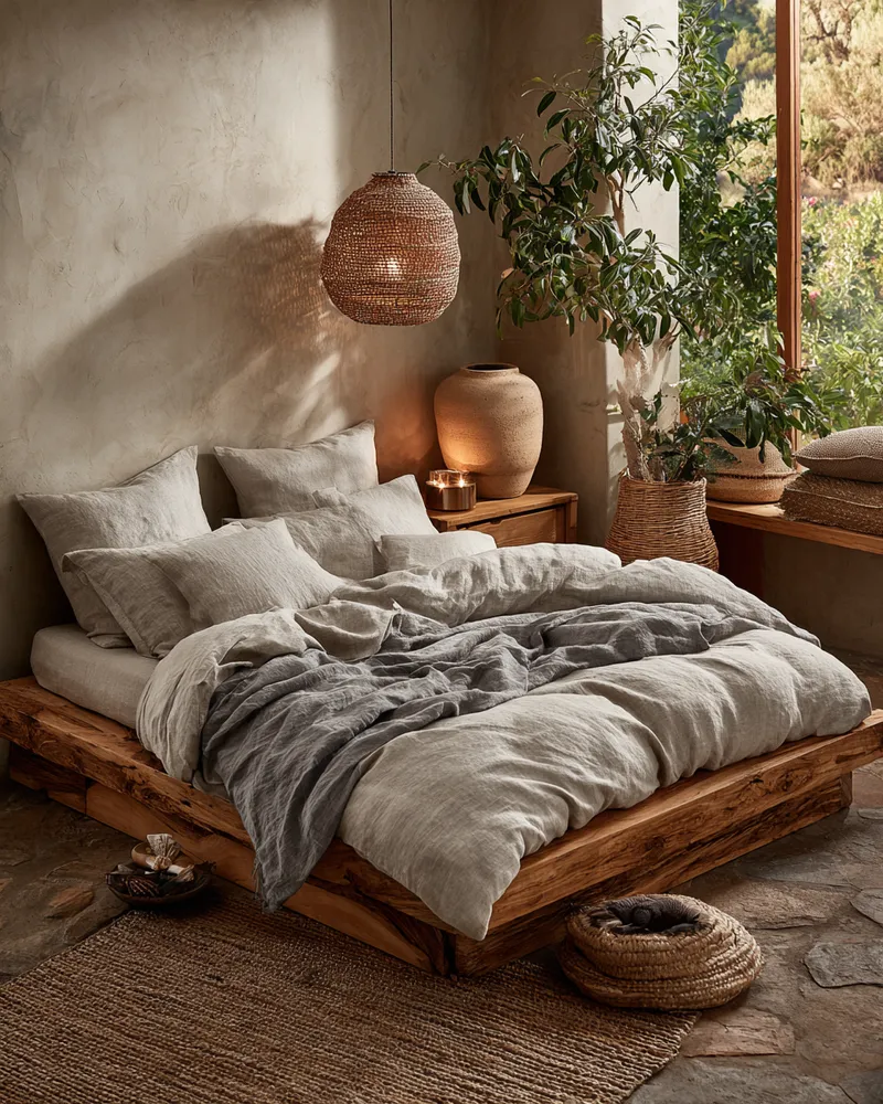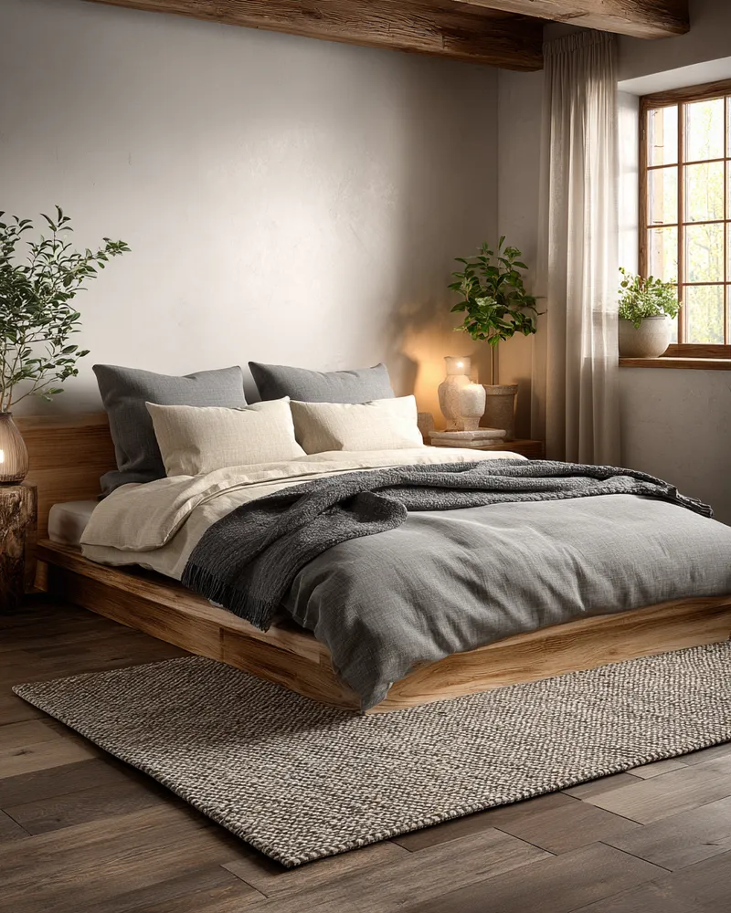 Save this for your tranquil bedroom escape! #JapandiBedroom#BedroomIdeas#MutedTones#CozyHomeIdeas#NaturalTextures#MinimalistBedroom#SleepSanctuary#HomeDecorTips#JapandiInspo#BedroomDesign