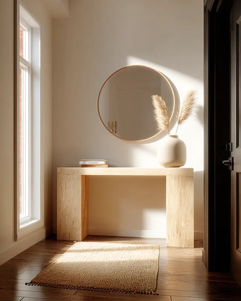 Save for entryway table inspo! #JapandiConsoleTable#EntrywayDecor#ConsoleTableIdeas#HomeEntrance#MinimalistFurniture#NaturalMaterials#DecorInspo#JapandiDesign#FoyerDesign#WelcomingHome