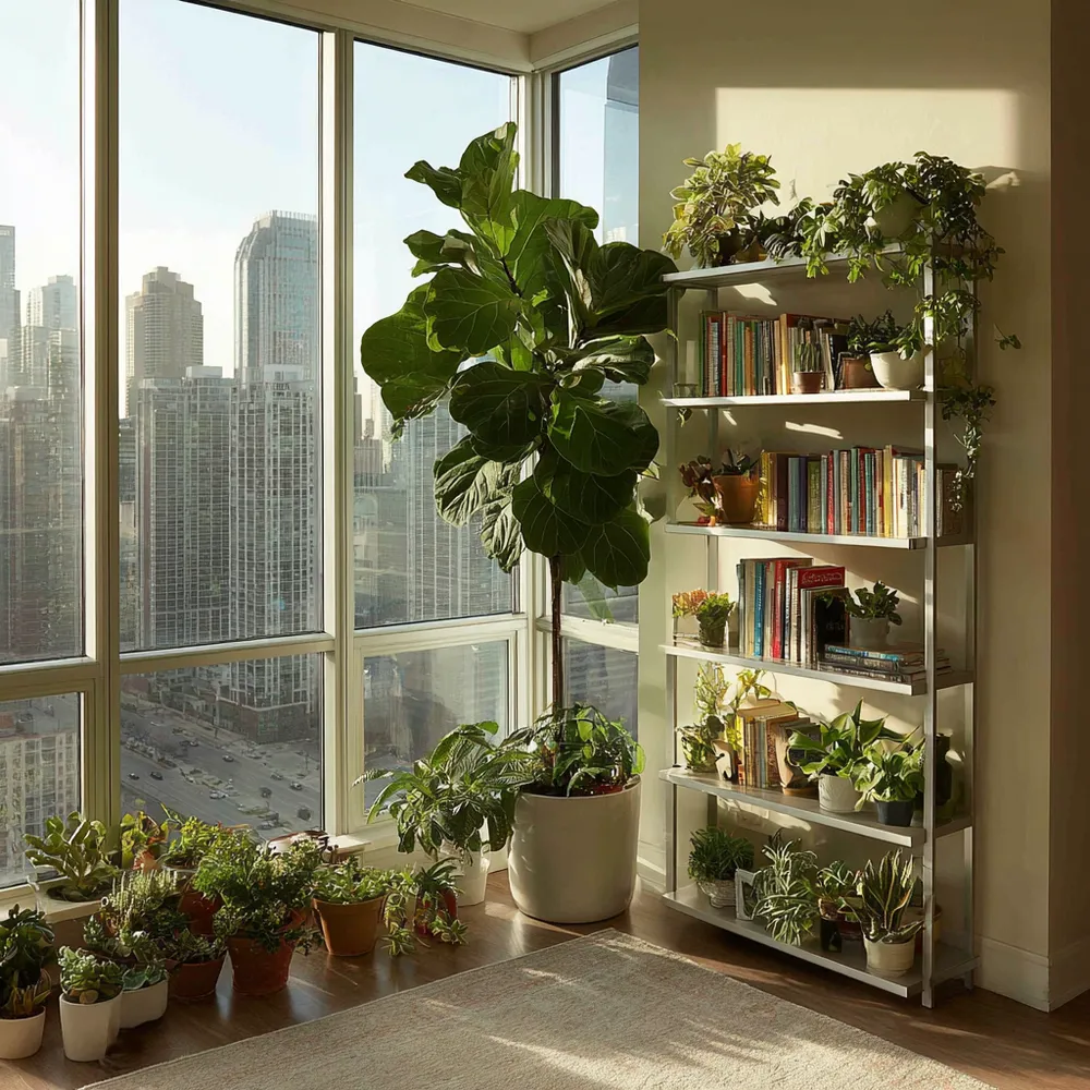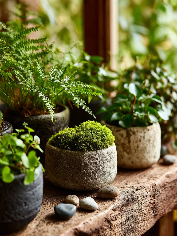 * Sunlight-loving plants near windows, shade-lovers deeper in.