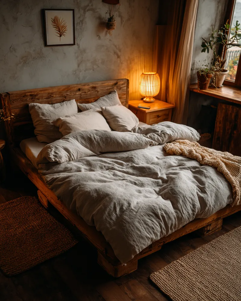 * **Layered textures:** Think linen bedding and a woven throw.