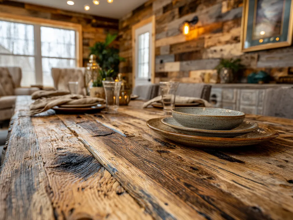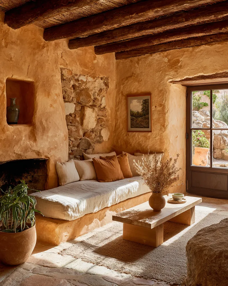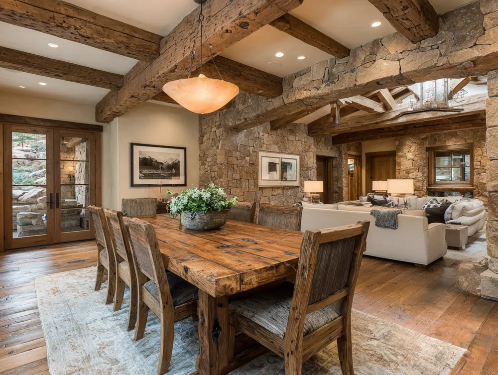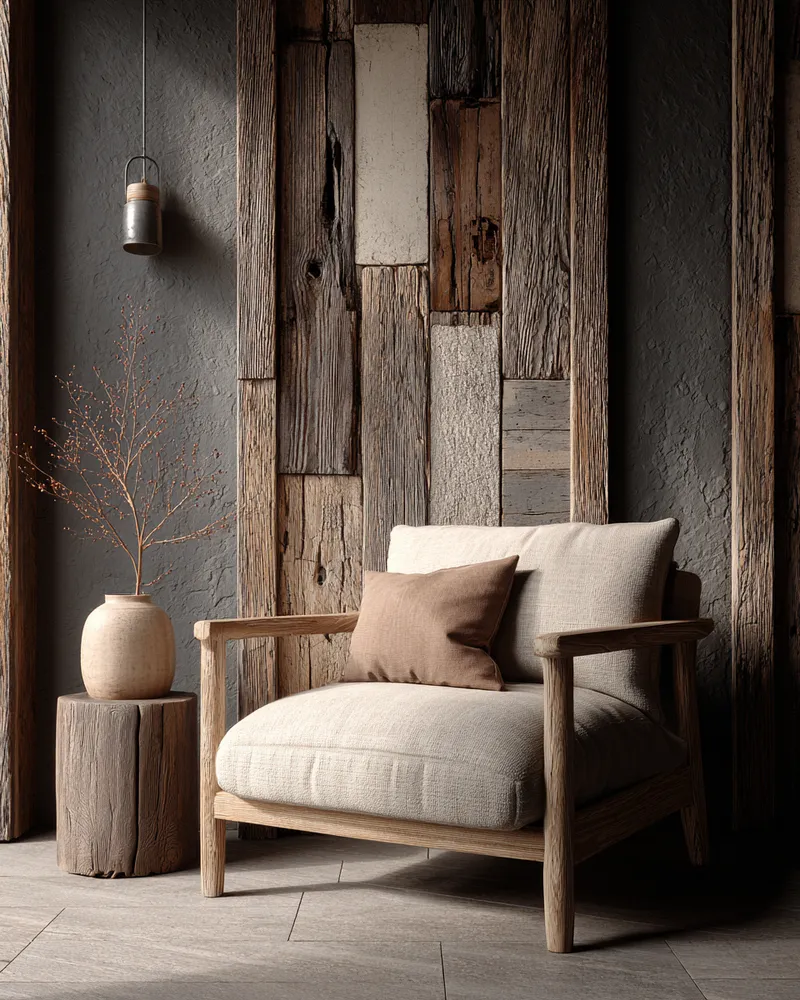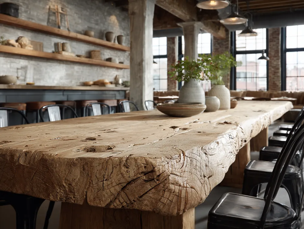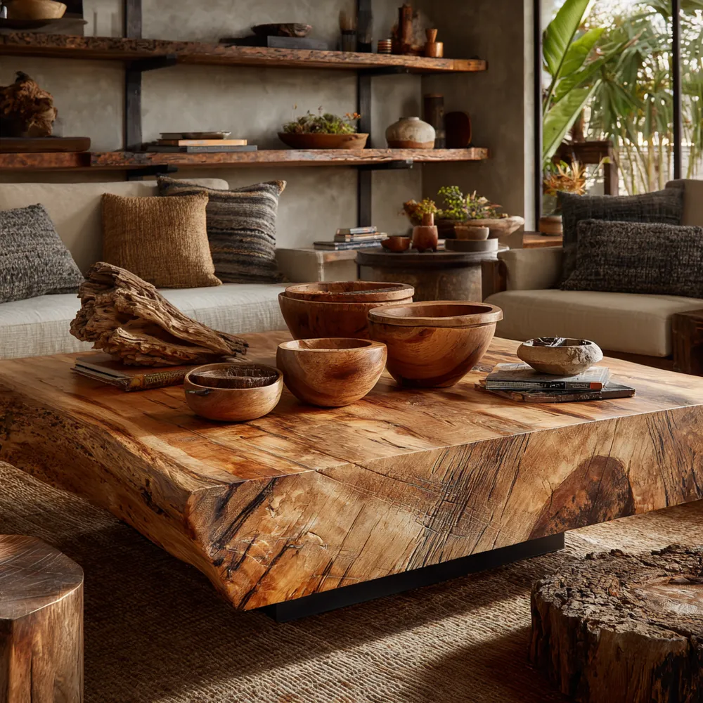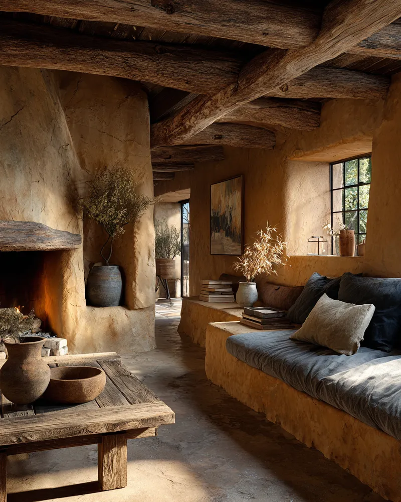 * **Raw wood elements:** Unfinished or lightly treated wood furniture, beams, or accents.