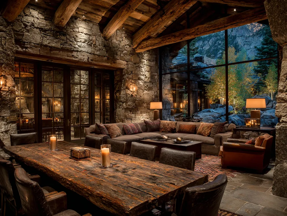 * **Cozy lighting:** Warm, ambient light from rustic fixtures.
