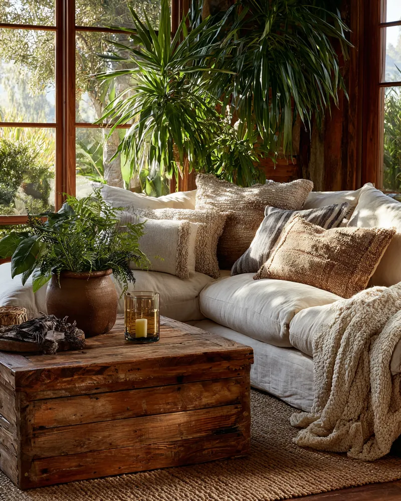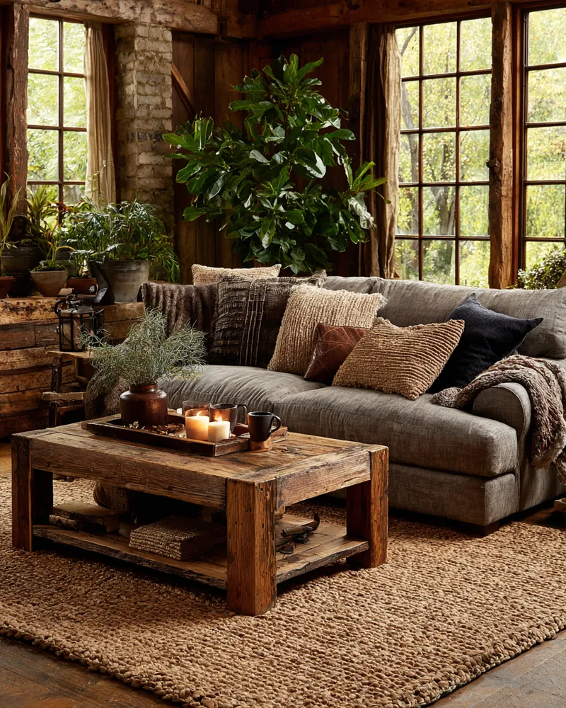 For those who love the cozy, grounded feeling of nature, bringing rustic charm into your home is key! Think natural wood tones, textured finishes, and a connection to the forest.