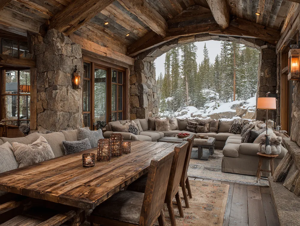 * **Natural textures:** Wool blankets, leather accents, stone details.